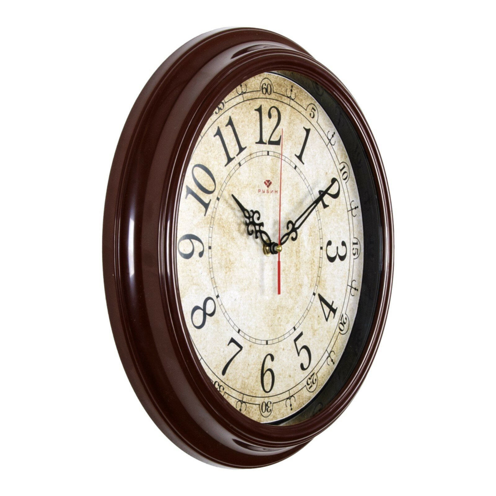 Часы настенные Рубин круглые, "Классика ретро", 35 см, обод коричневый