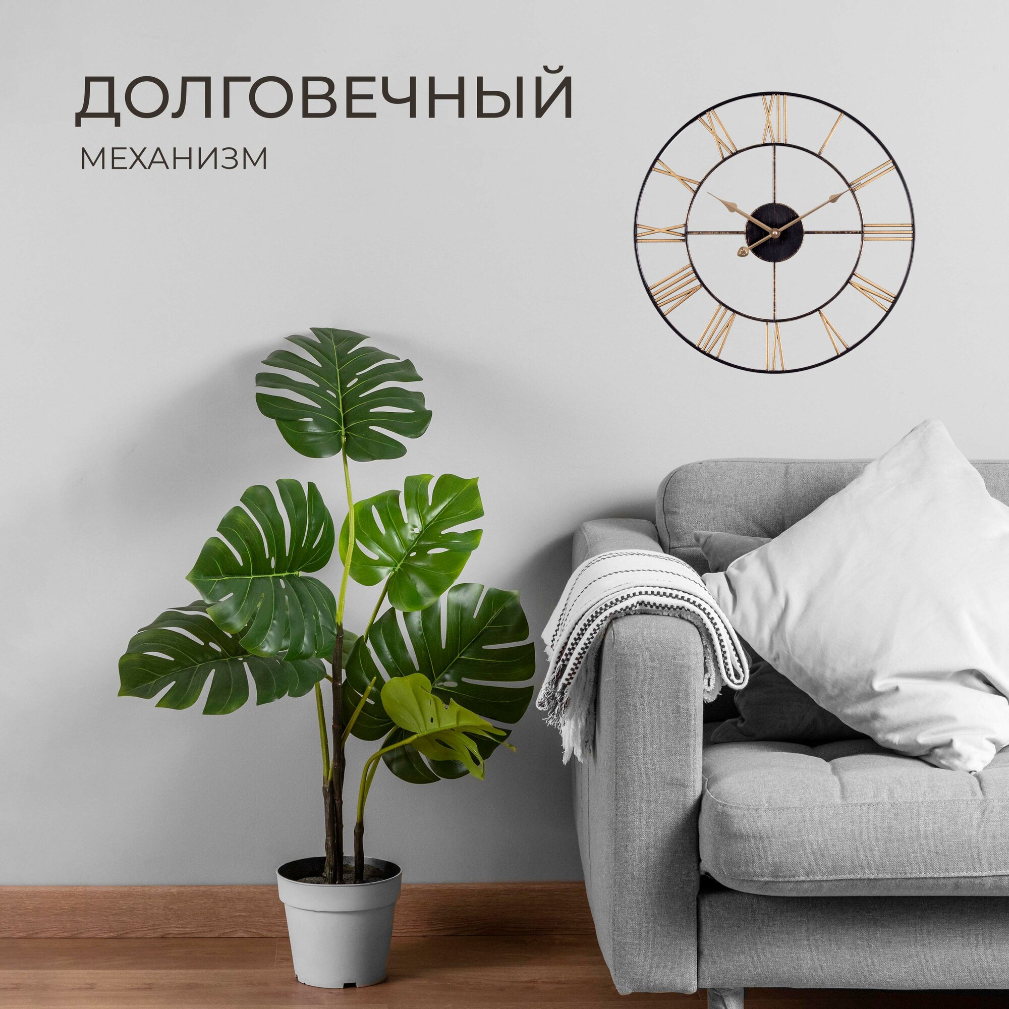 Большие настенные часы Лофт, бесшумные часы d=48 см, часы с римскими цифрами, открытая стрелка, Белый Золото