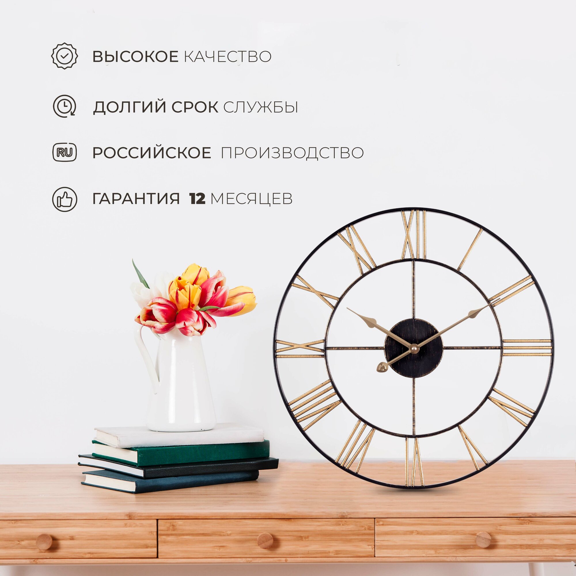 Часы настенные круг диаметр 46 см , открытая стрелка, корпус черный лофт