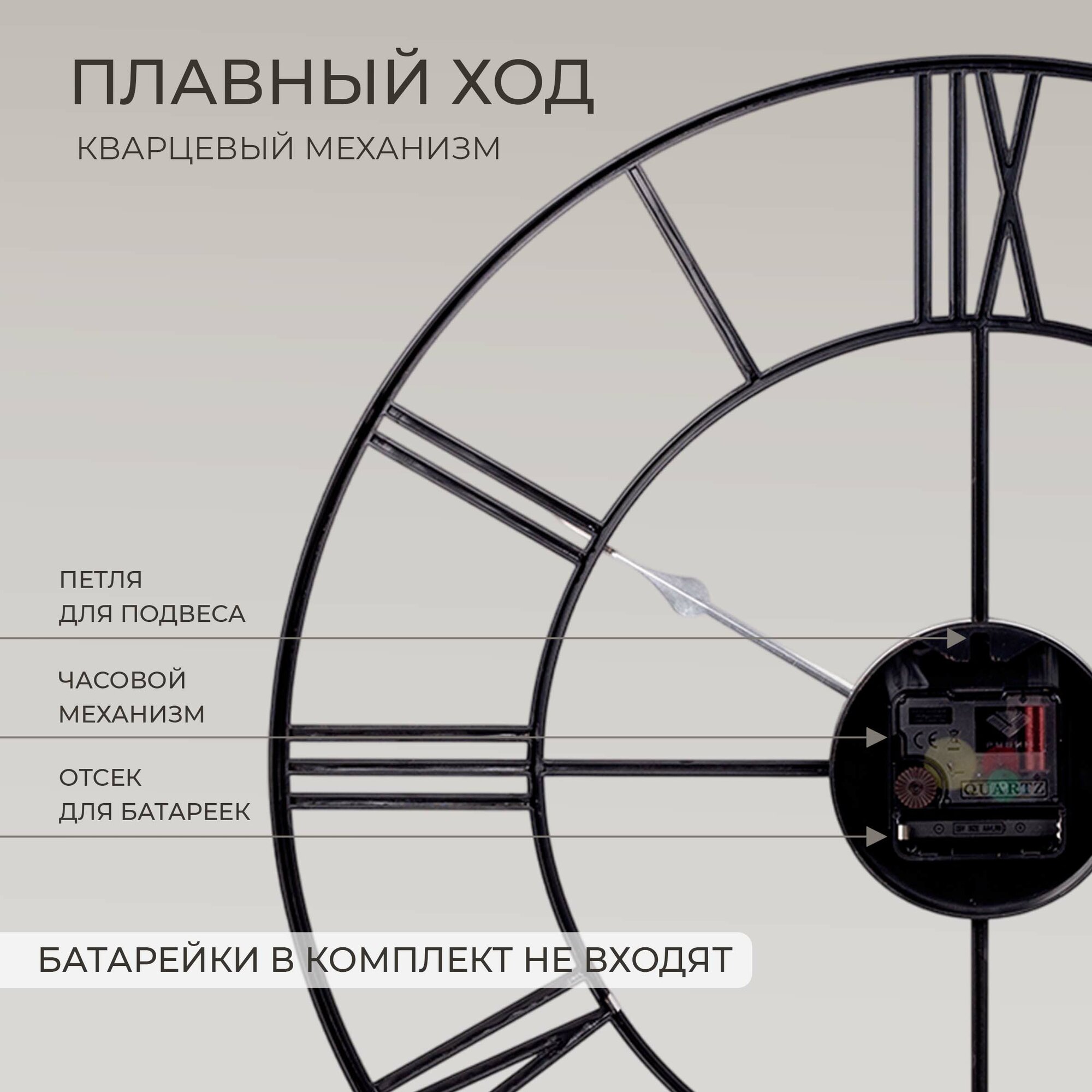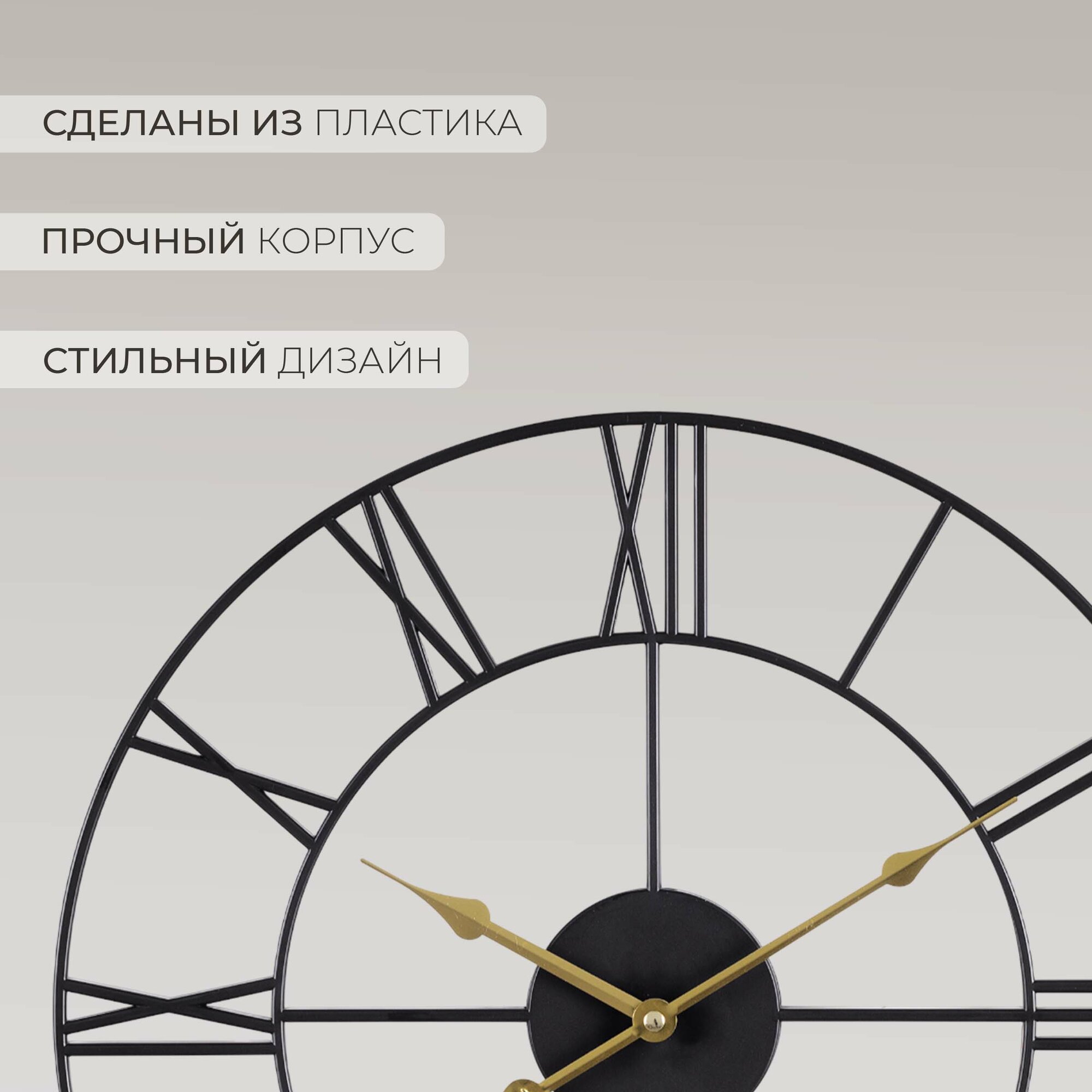 Часы настенные круг диаметр 46 см , открытая стрелка, корпус черный лофт