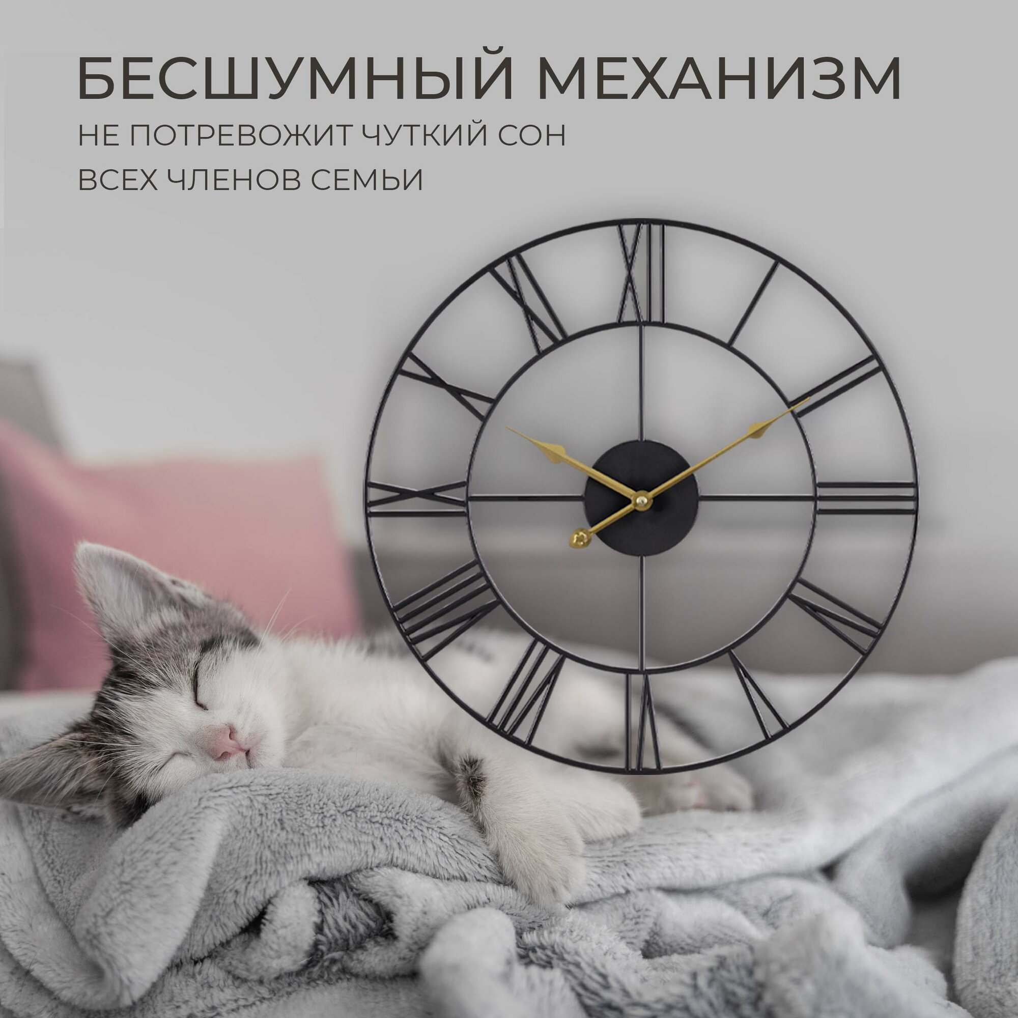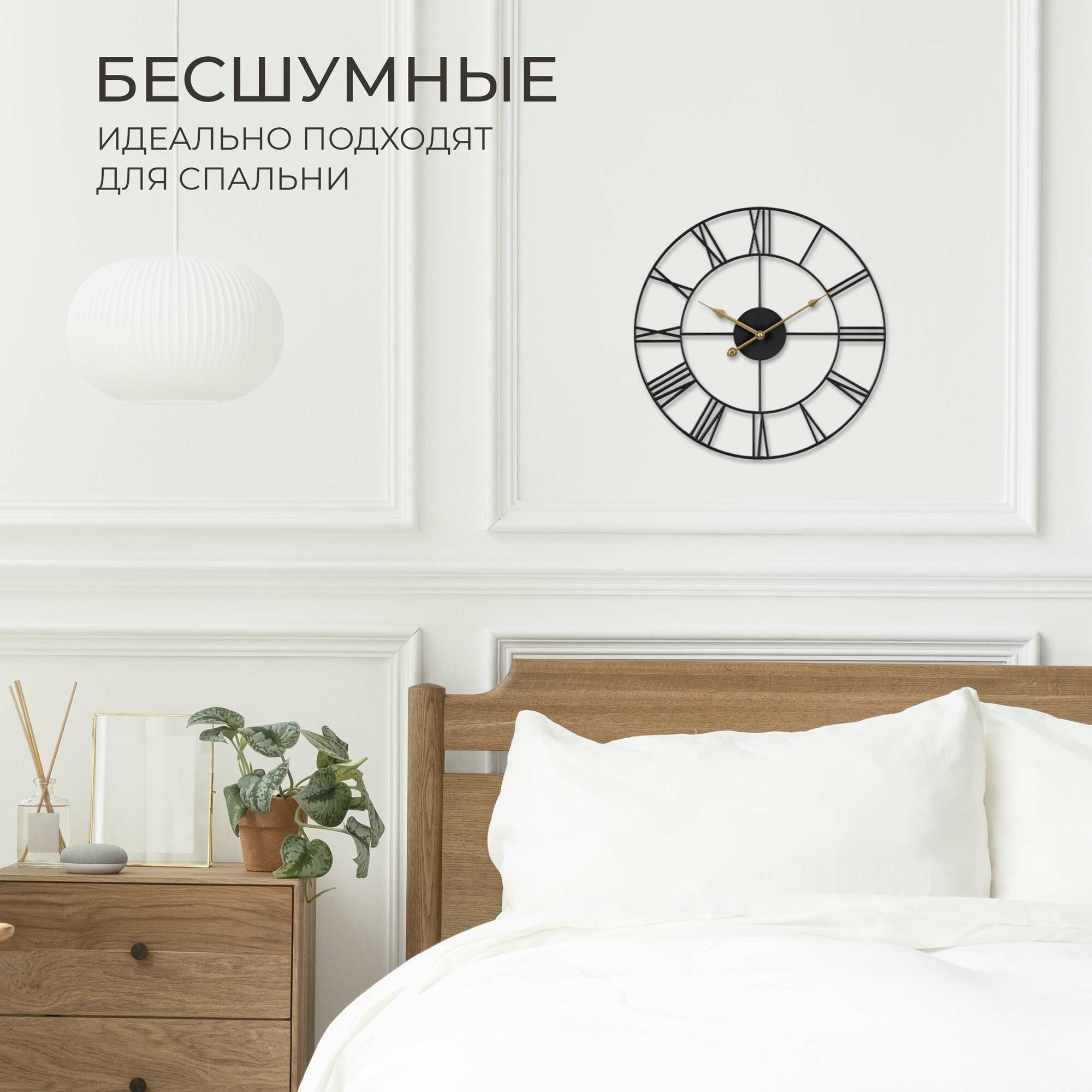 Большие настенные часы Лофт, бесшумные часы d=48 см, часы с римскими цифрами, открытая стрелка, Белый Золото