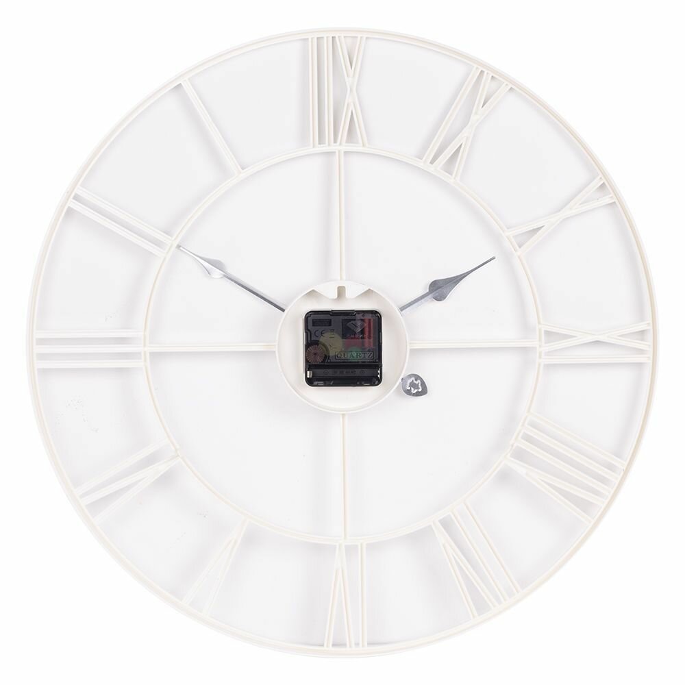 Большие настенные часы Лофт, бесшумные часы d=48 см, часы с римскими цифрами, открытая стрелка, Белый Золото/ Белые большие часы металл