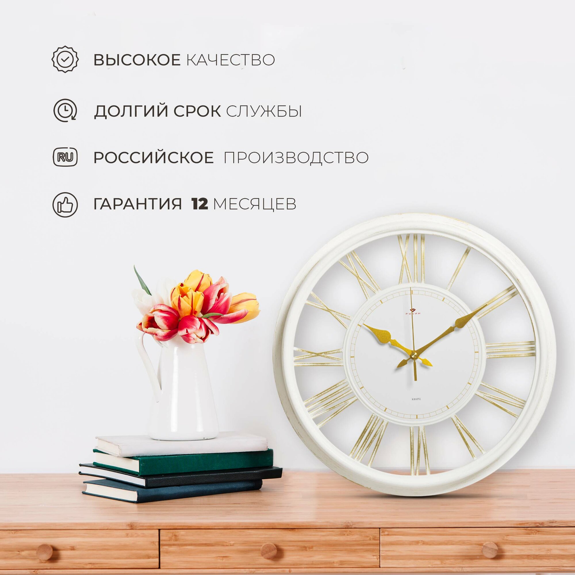 Ниже Вы можете прочитать отзывы на Рубин Часы настенные круглые 40 см, большие Римские цифры кварцевые, ознакомится с подробными характеристиками, посмотреть интересные обзоры и фотографии на Рубин Часы настенные круглые 40 см, большие Римские цифры кварцевые.