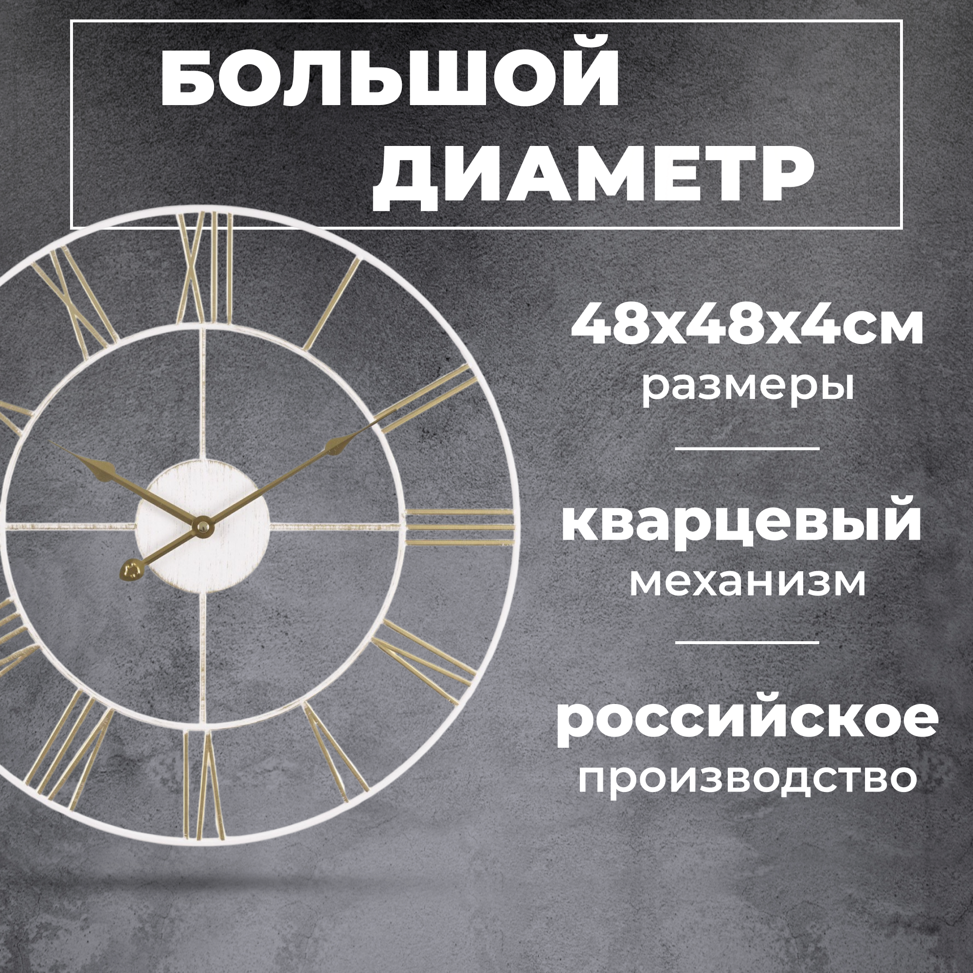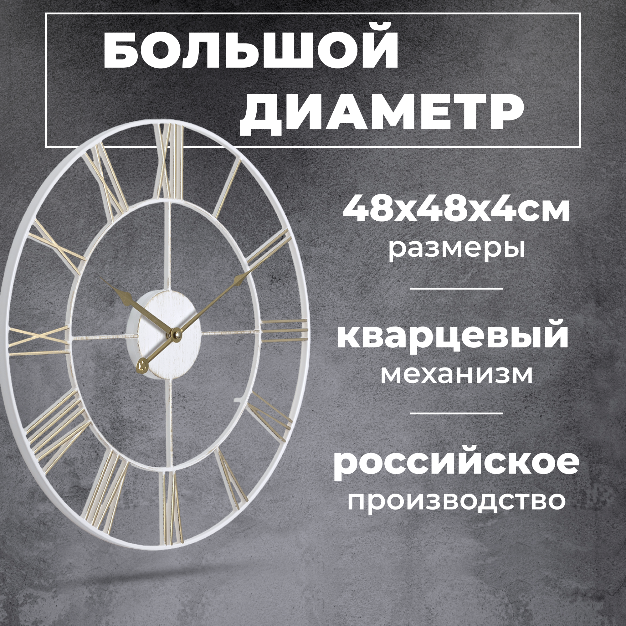 Купить Большие настенные часы Лофт, бесшумные часы d=48 см, часы с римскими цифрами, открытая стрелка, Белый Золото
