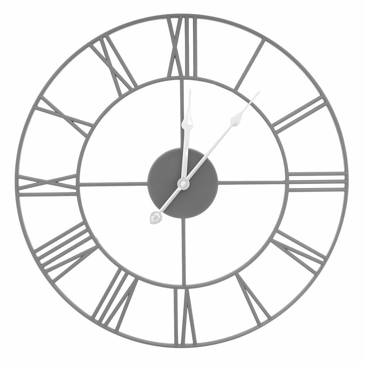 Большие настенные часы Лофт, бесшумные часы d=48 см, часы с римскими цифрами, открытая стрелка, Белый Золото/ Белые большие часы металл