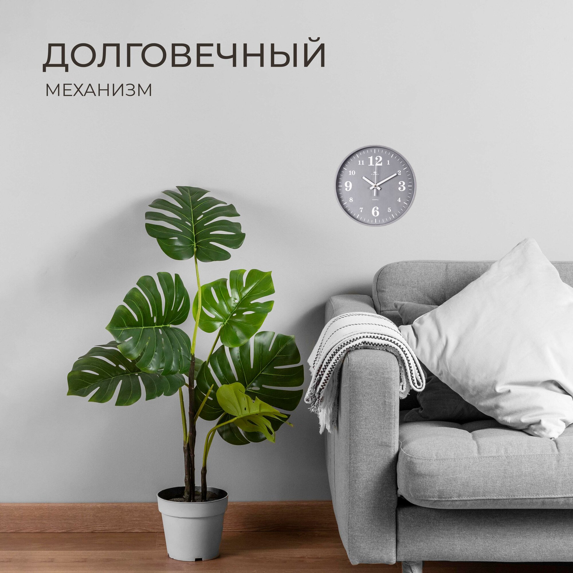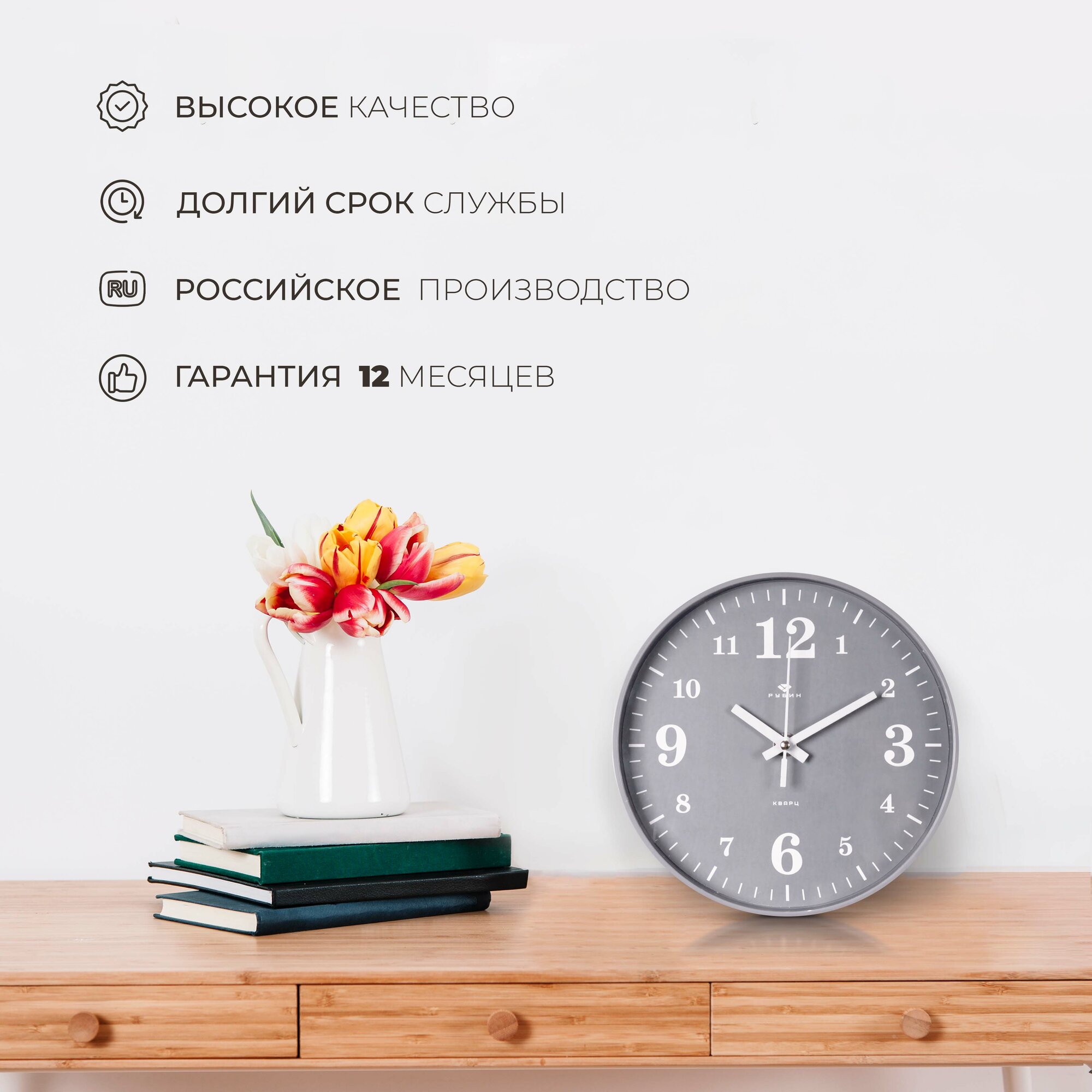 Стильные кварцевые часы в круглом корпусе Рубин Классика 3524-007 35 см с большими арабскими цифрами для украшения интерьера гостиной, спальни, кухни или офиса