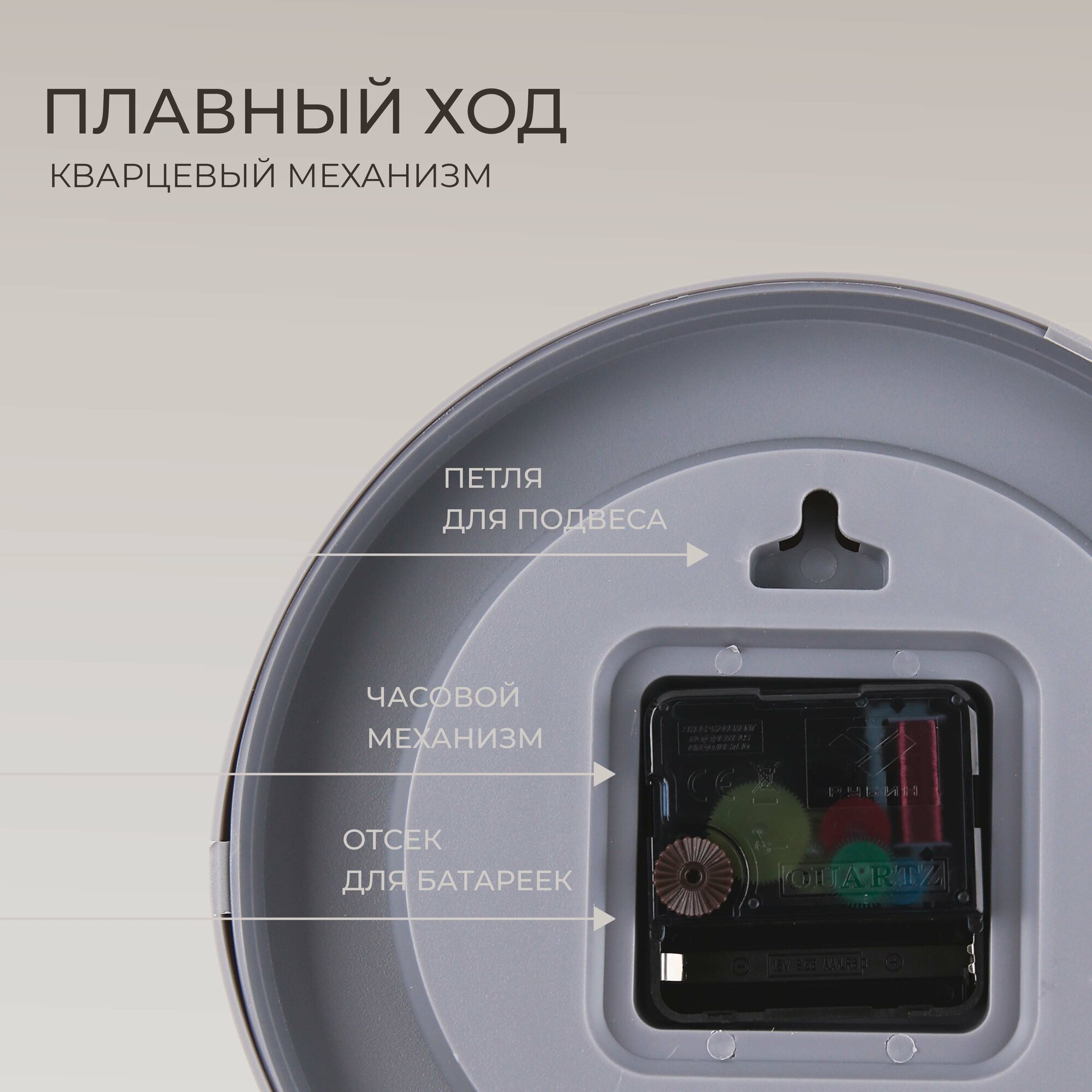 Часы настенные бесшумные Рубин, d 29 см кварцевые, плавный ход, пластик