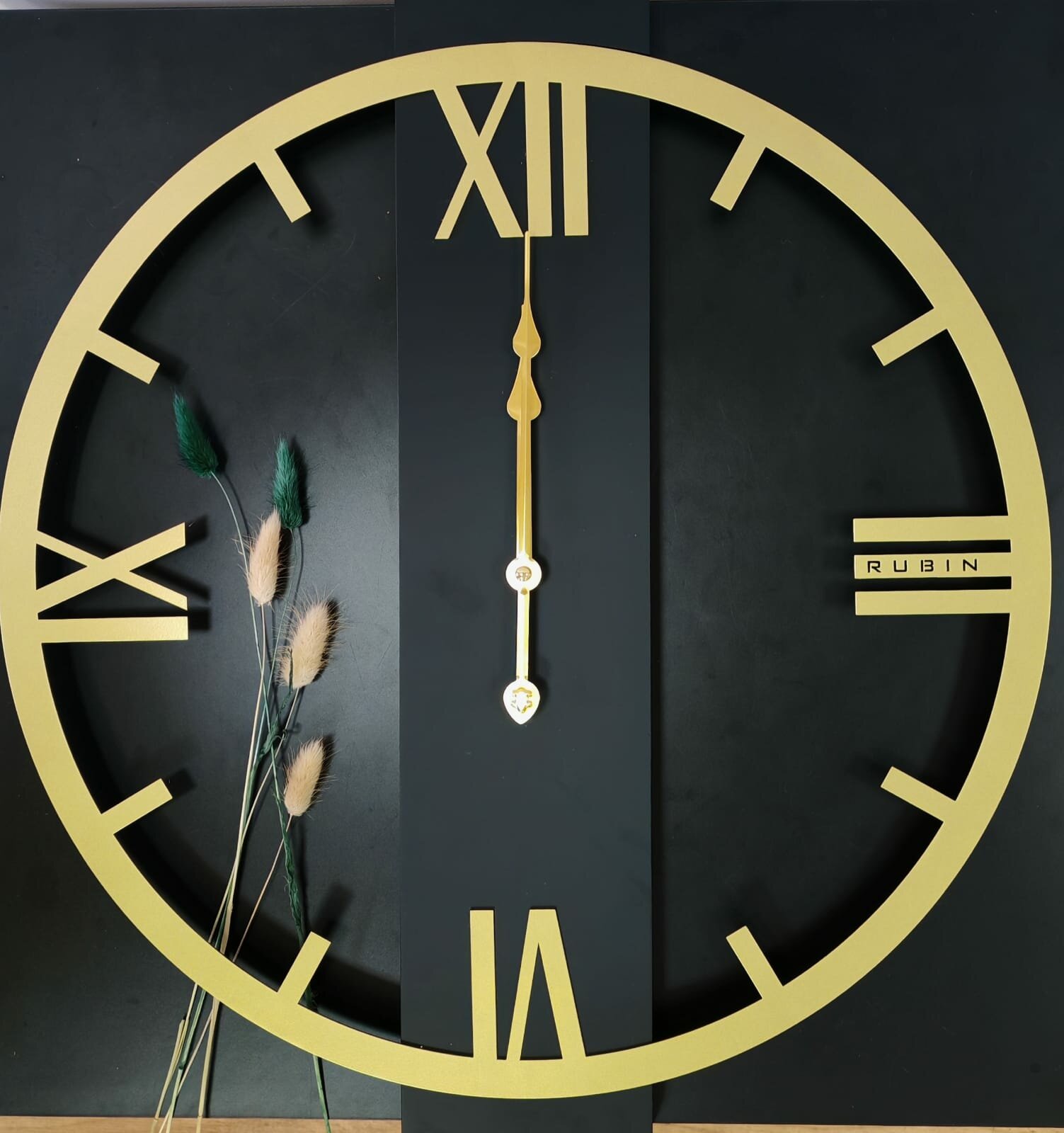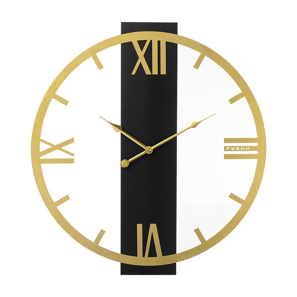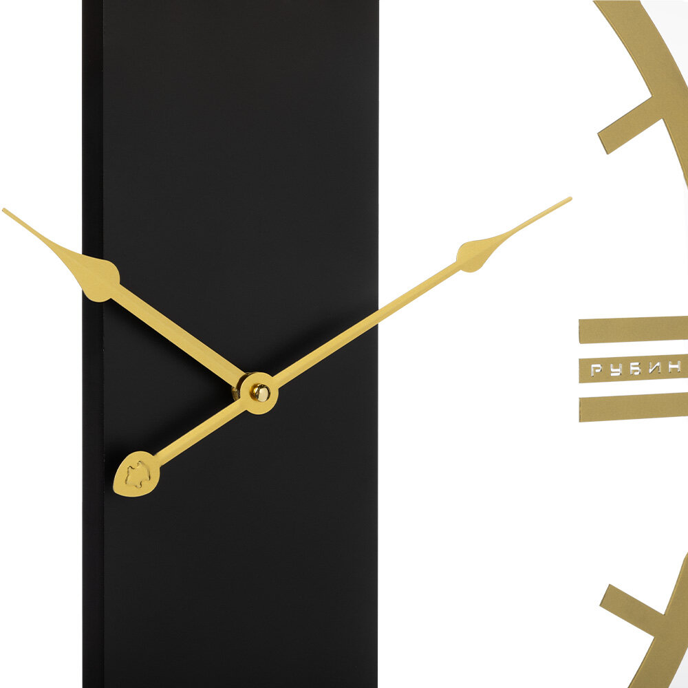 Часы настенные интерьерные, Рубин, часы бесшумные черные с золотым циферблатом
