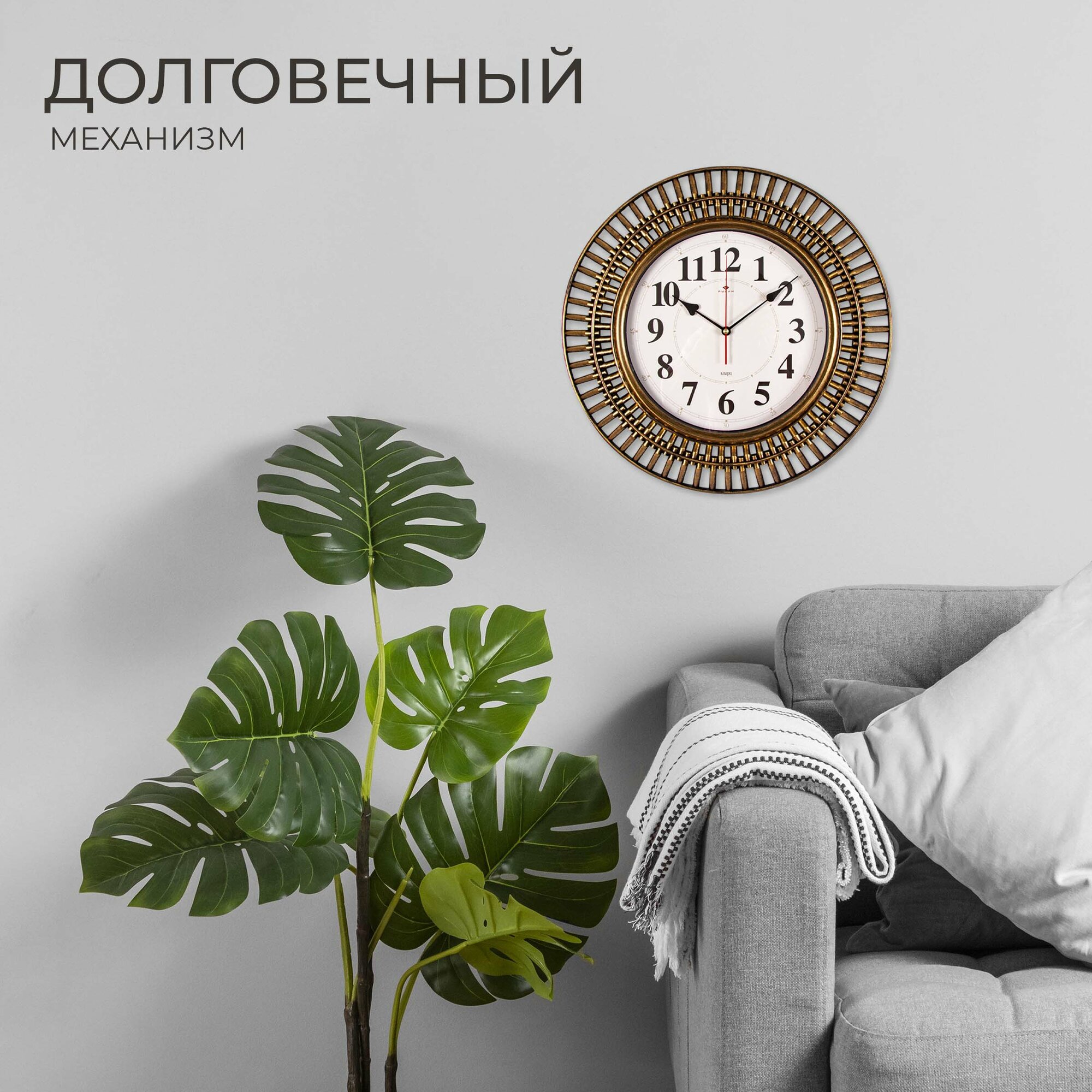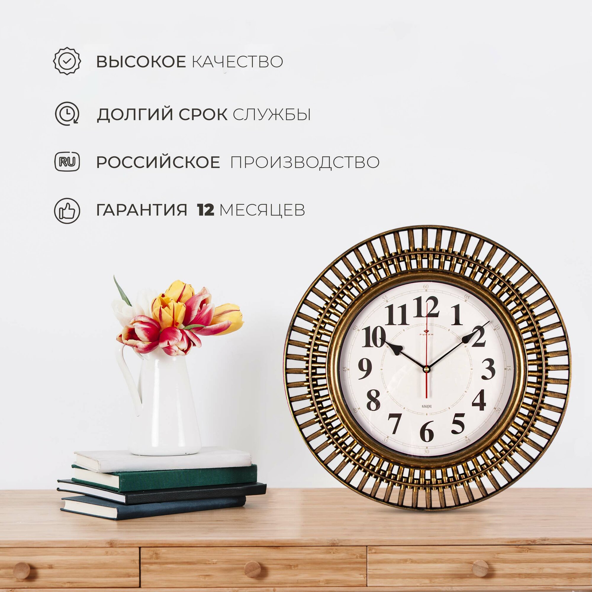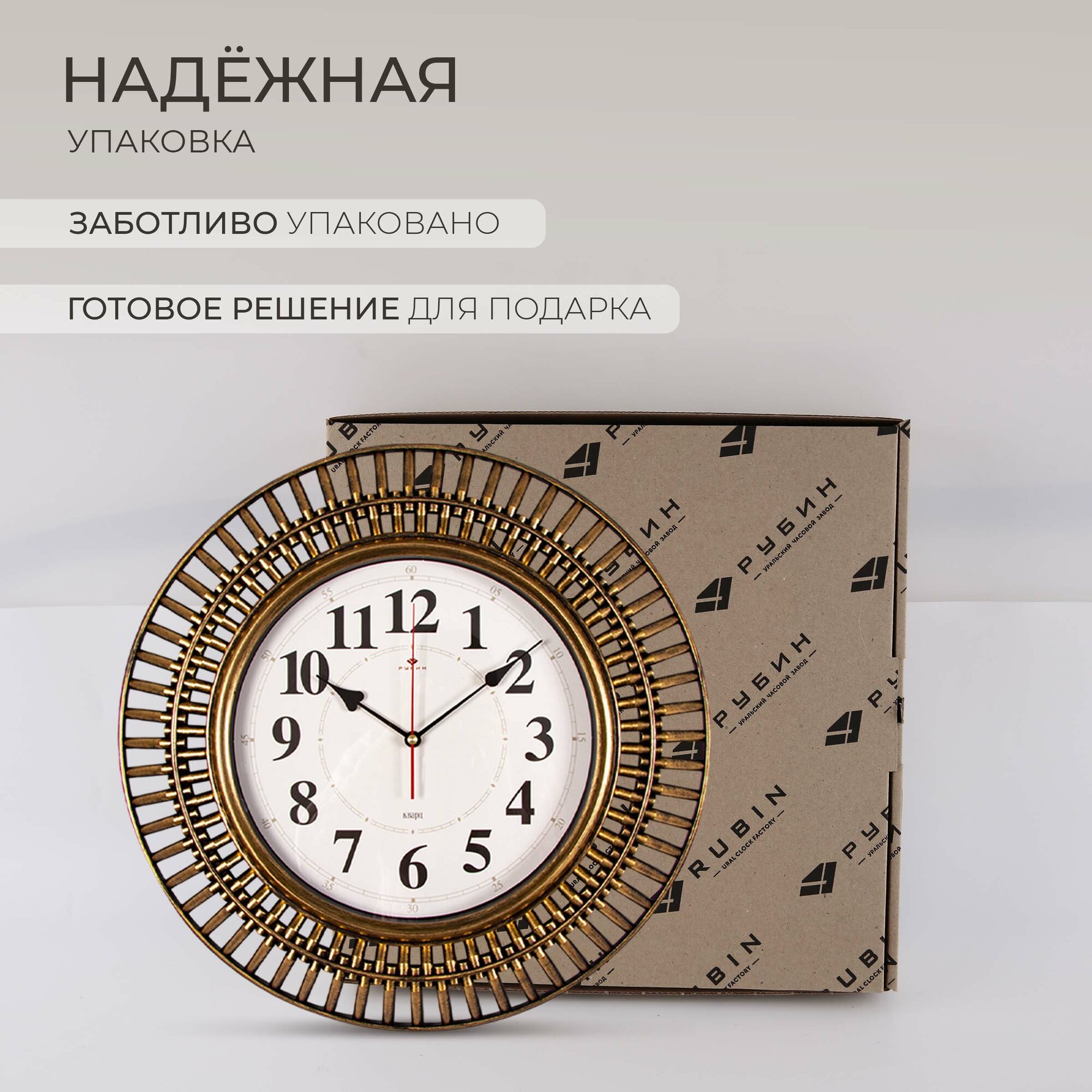Стильные кварцевые часы в круглом корпусе Рубин Классика 3524-007 35 см с большими арабскими цифрами для украшения интерьера гостиной, спальни, кухни или офиса