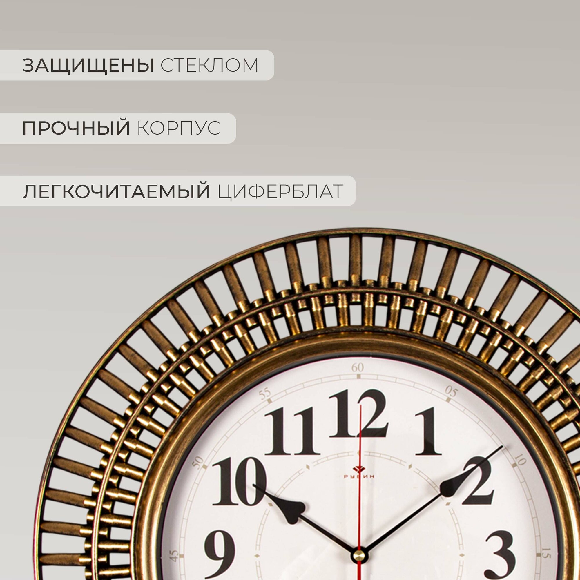 Часы настенные Рубин "Античность" Рубин, круглые, кварцевые, плавный ход, бесшумный, d35см