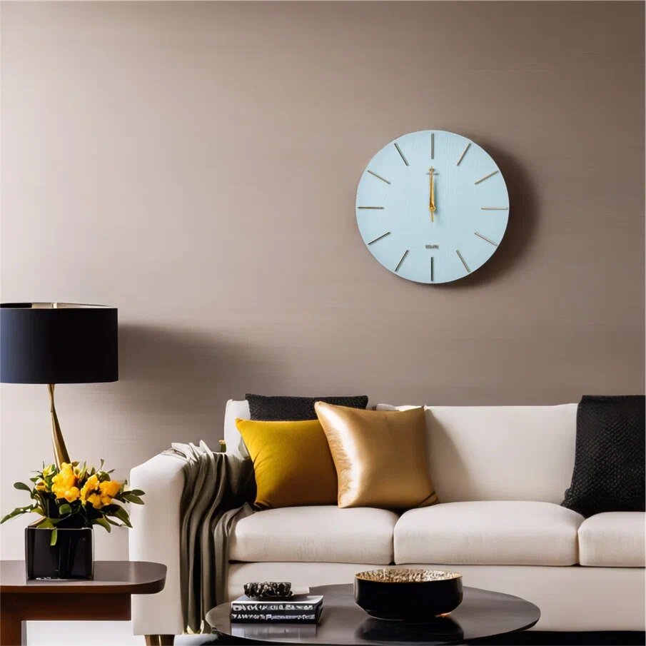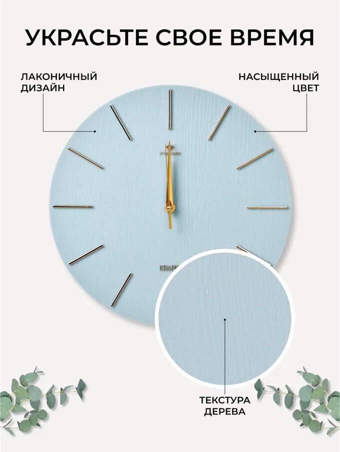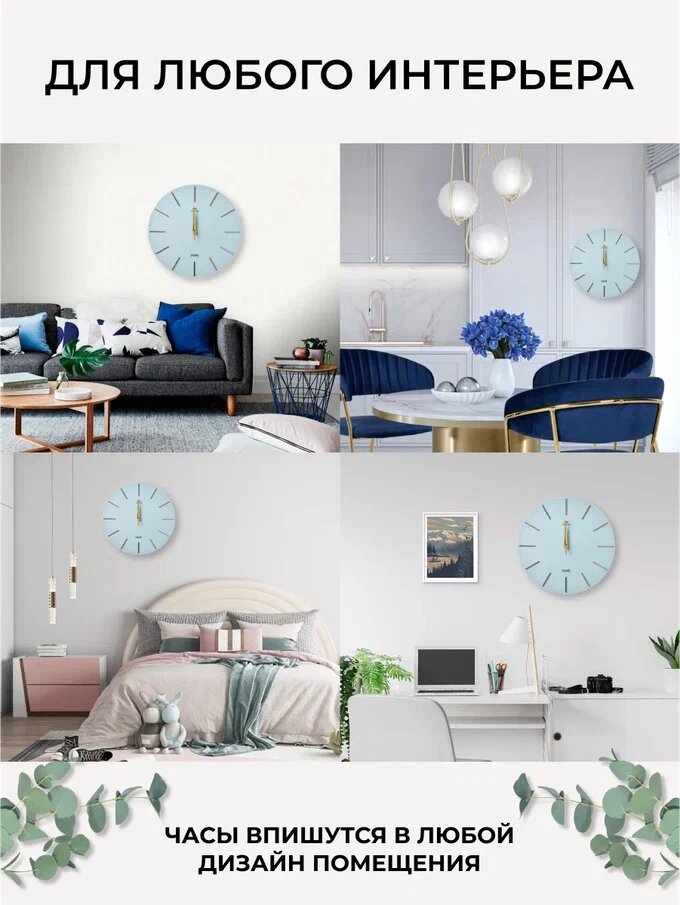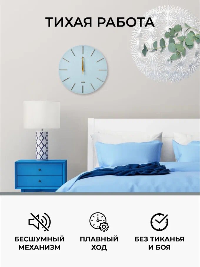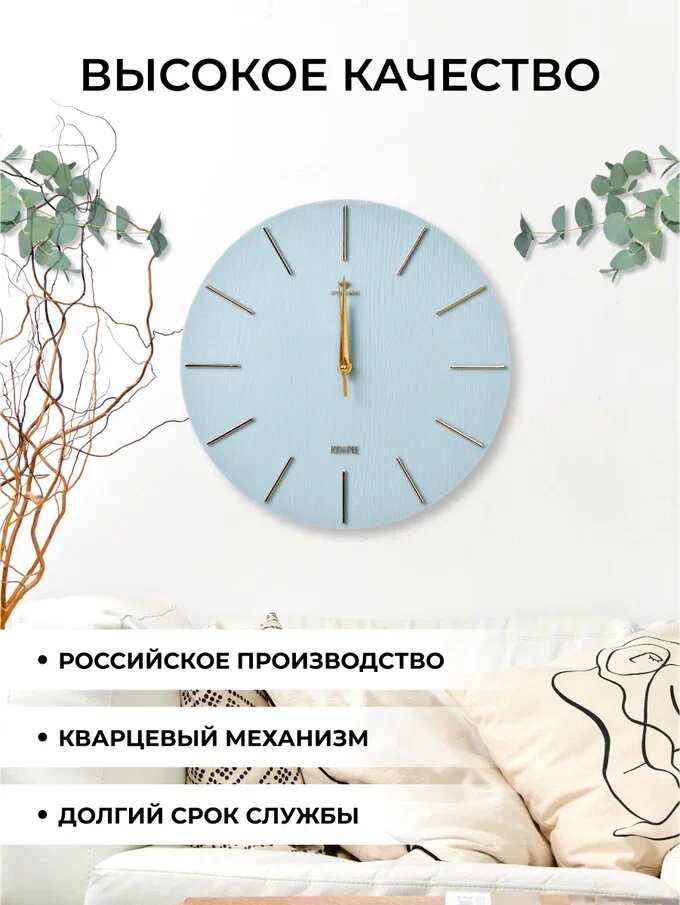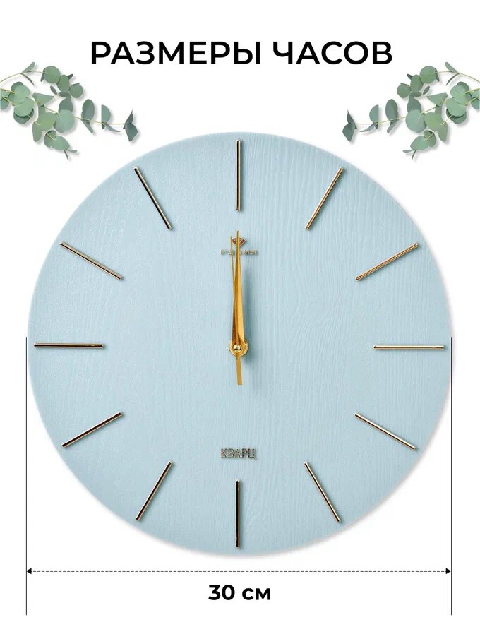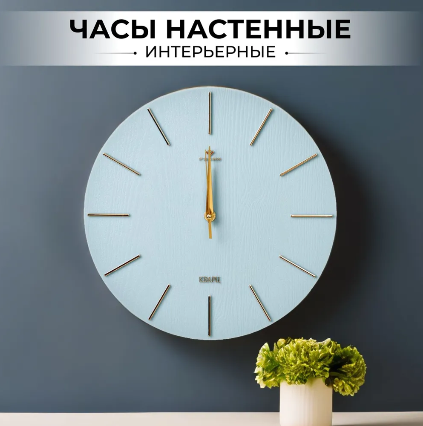 СохранитьБесшумные настенные круглые часы 30 см диаметр, кварцевые часы Рубин без стекла/ Интерьерные часы синие циферблат золото интересное: