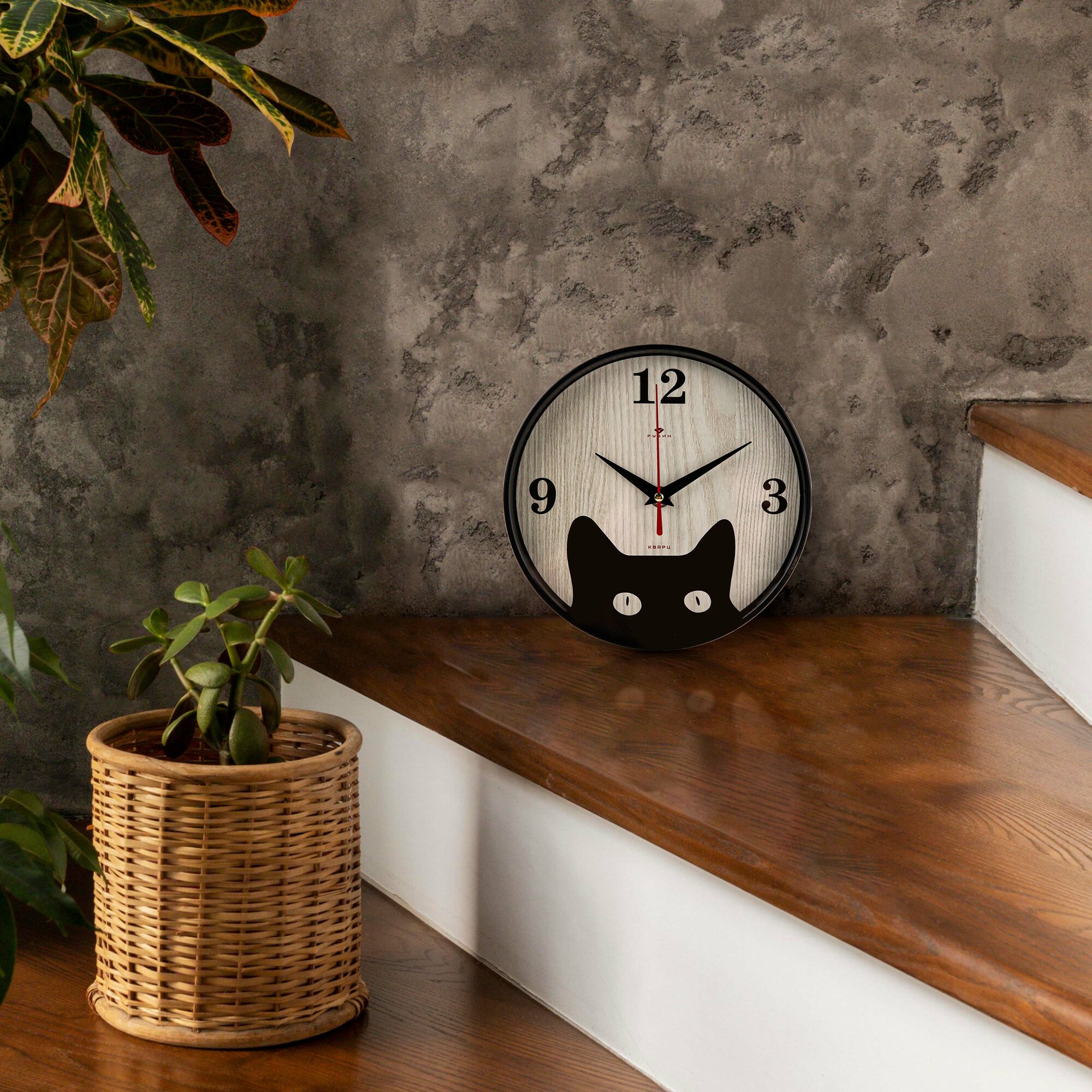 Часы настенные Рубин 2524-002 (круг диаметр 25см), основание черное "Классика"