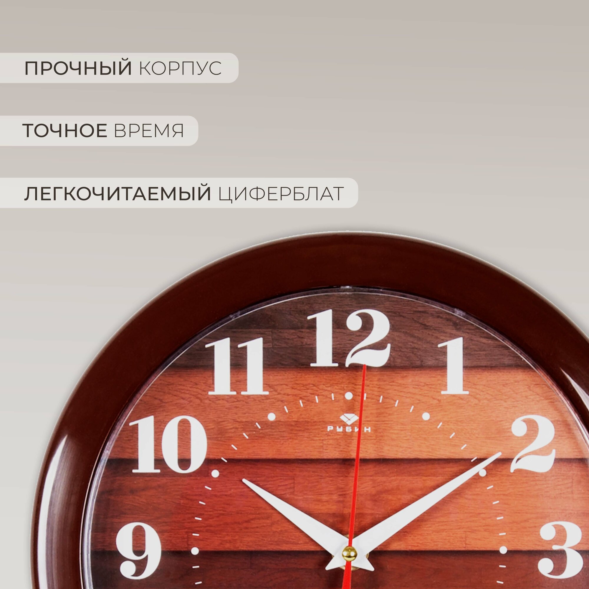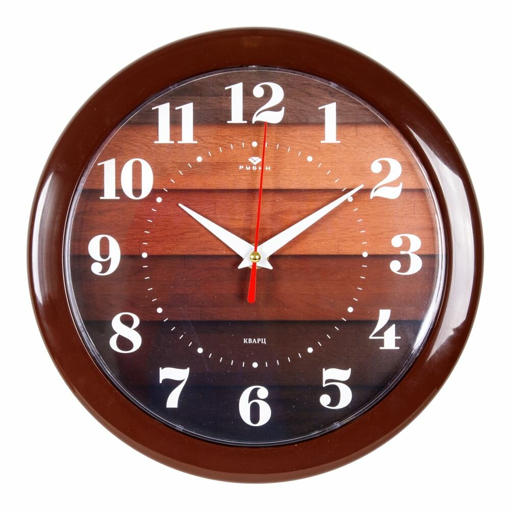 Настенные часы Рубин "Текстура Дерева", бесшумные, кварцевые, круглые, пластик, 29х29 см