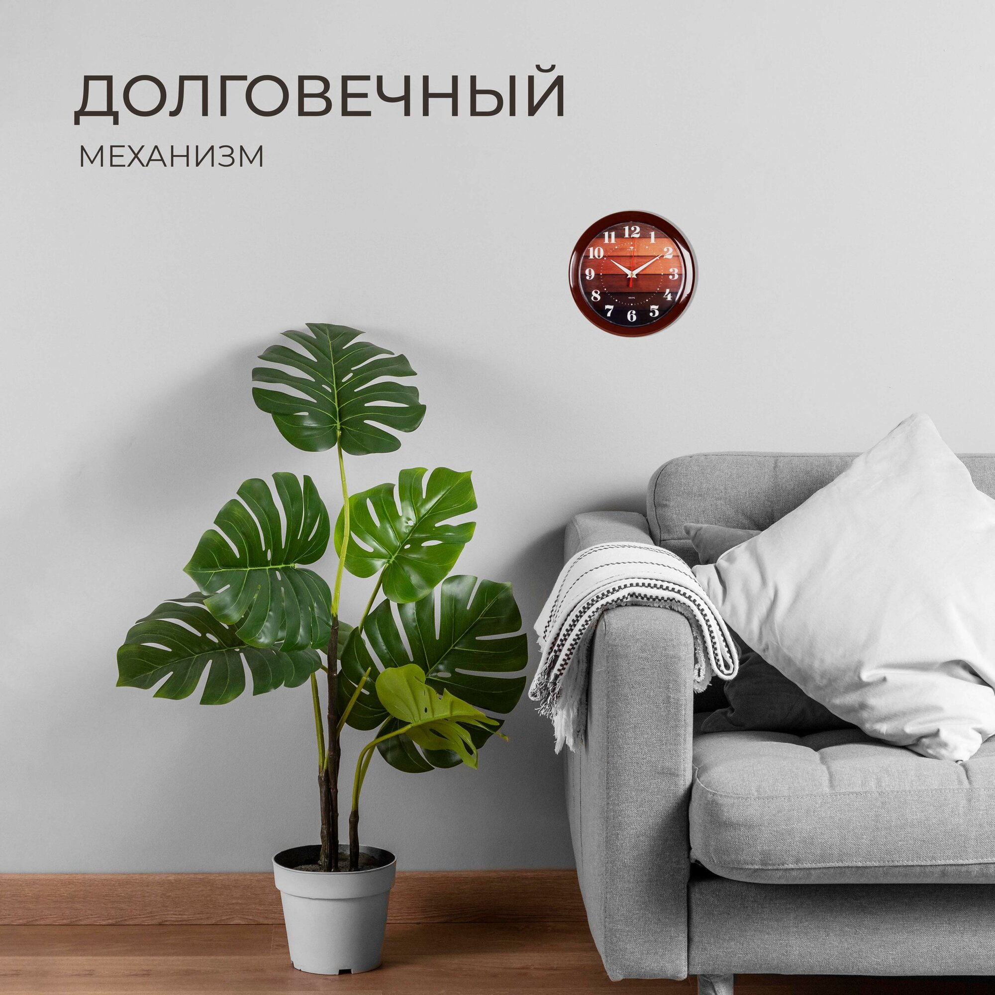 Часы настенные бесшумные Рубин цвет коричневый, на кухню диаметр 30 см