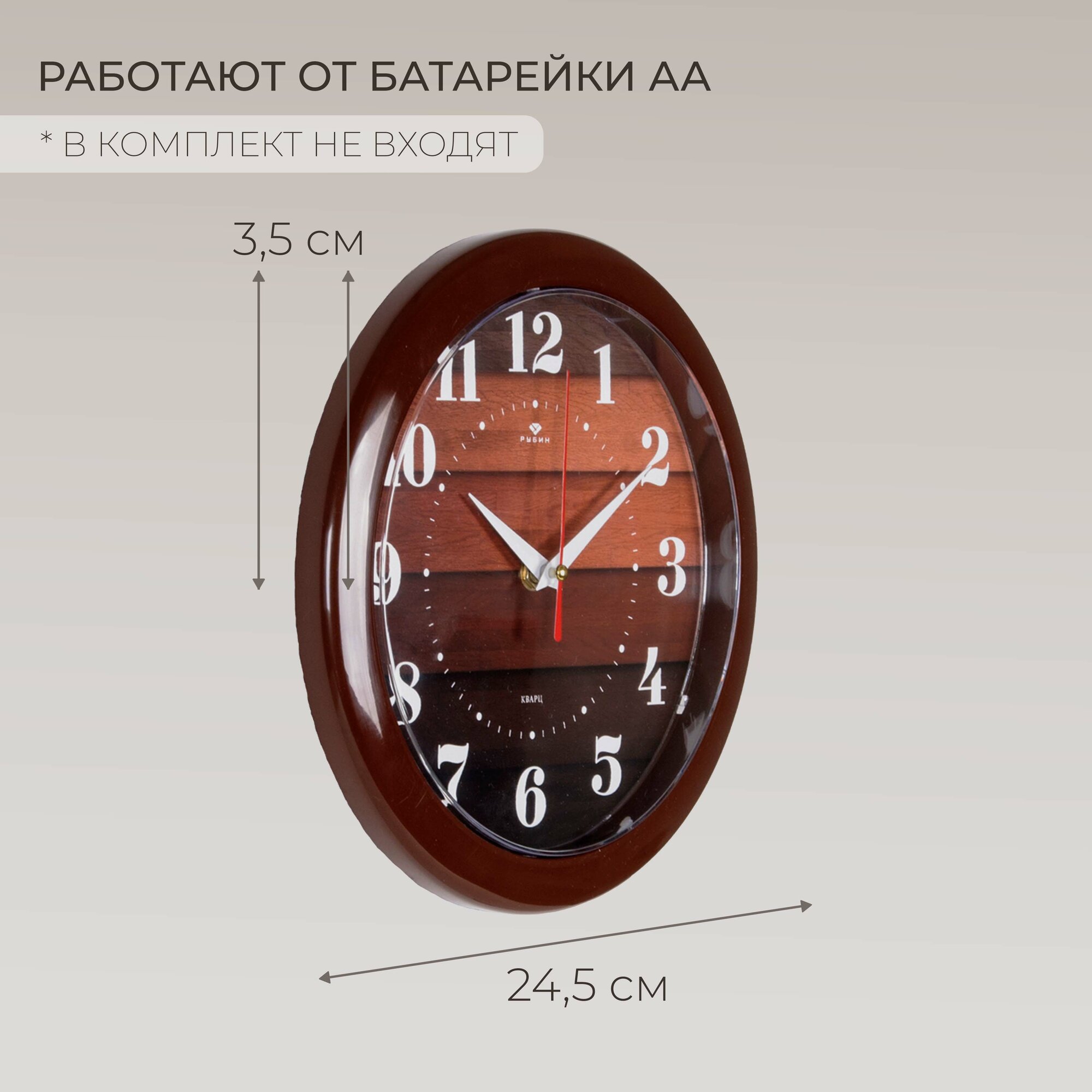 Часы большие настенные кварцевые овальные 29,5х38,5см Рубин с большими арабским цифрами для украшения интерьера