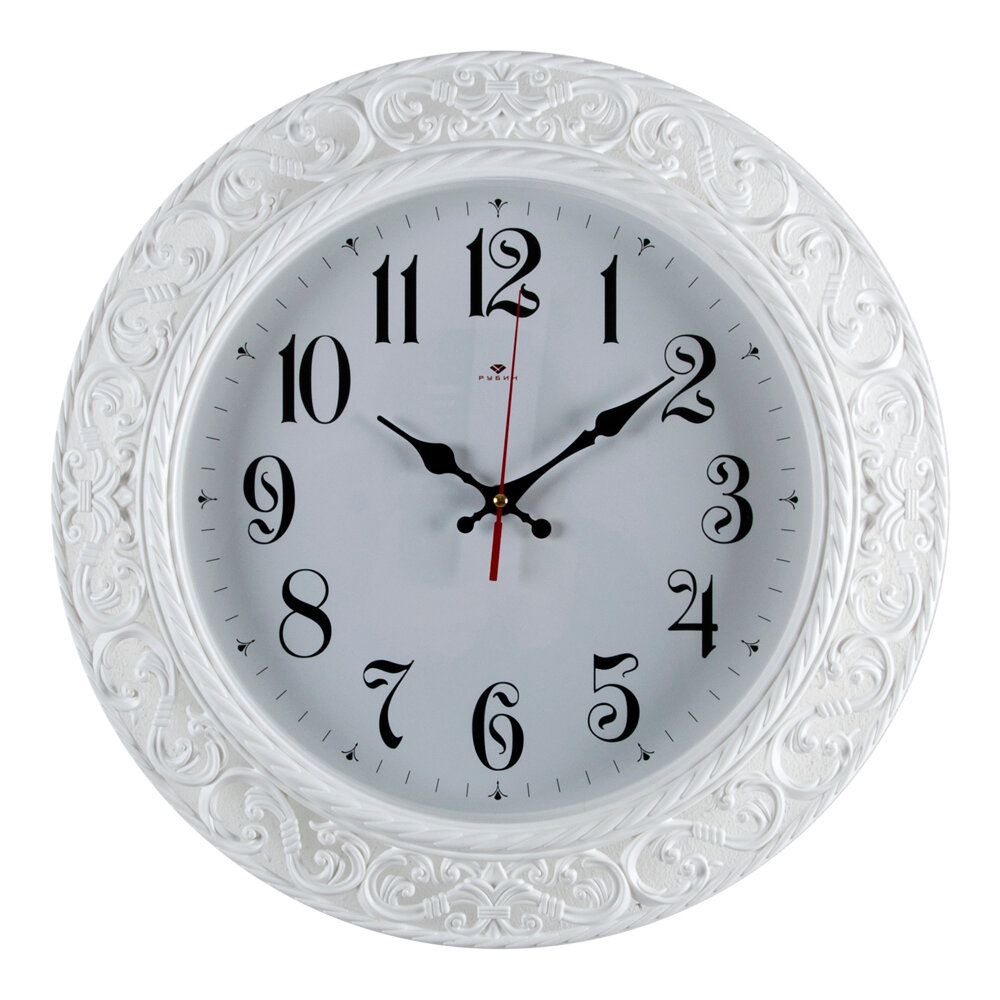 Часы настенные, кварцевые, белые, бесшумные, круглые, пластик, стекло, арабские цифры, Рубин