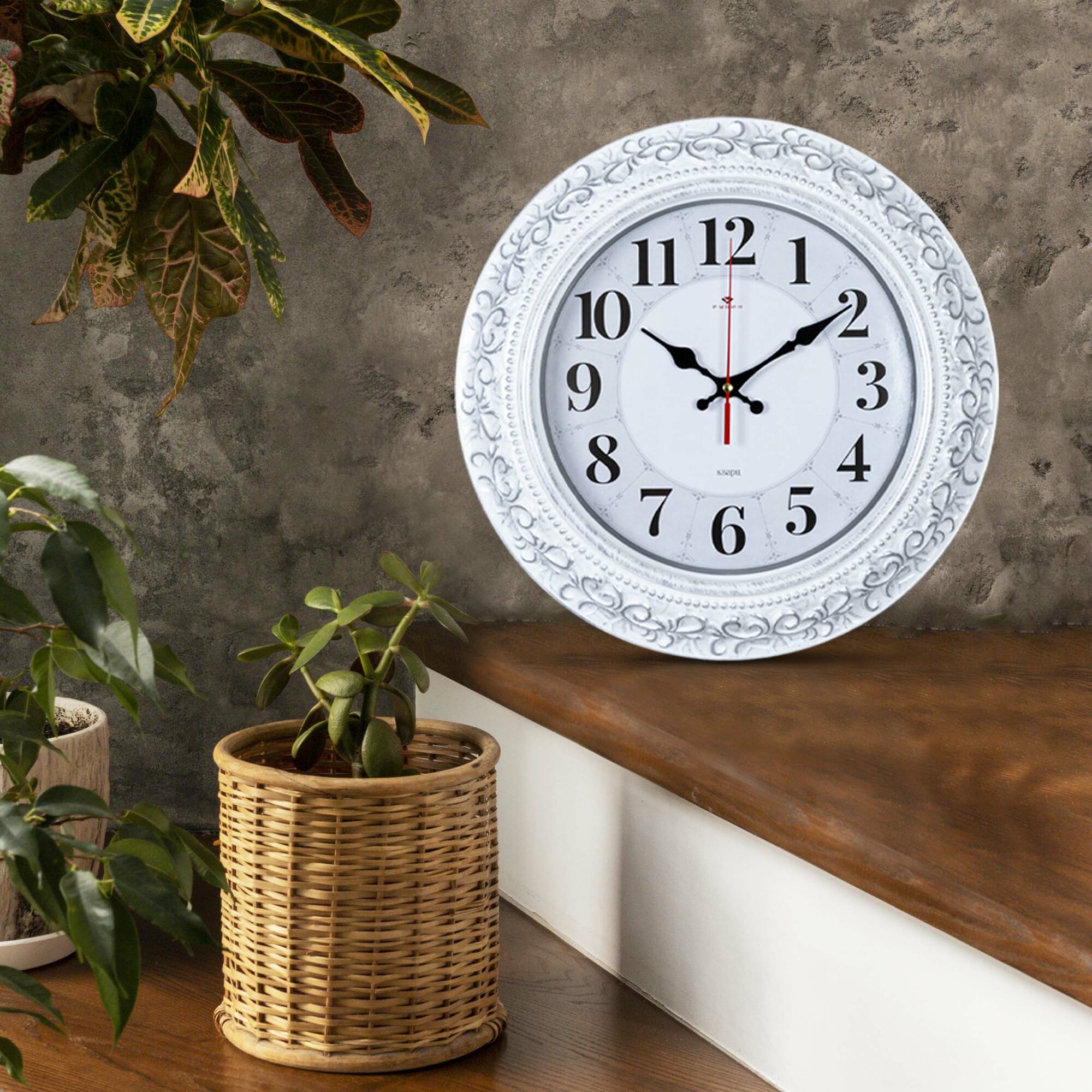 Часы настенные ажурные Рубин, 38см большие кварцевые, белые с плавным ходом