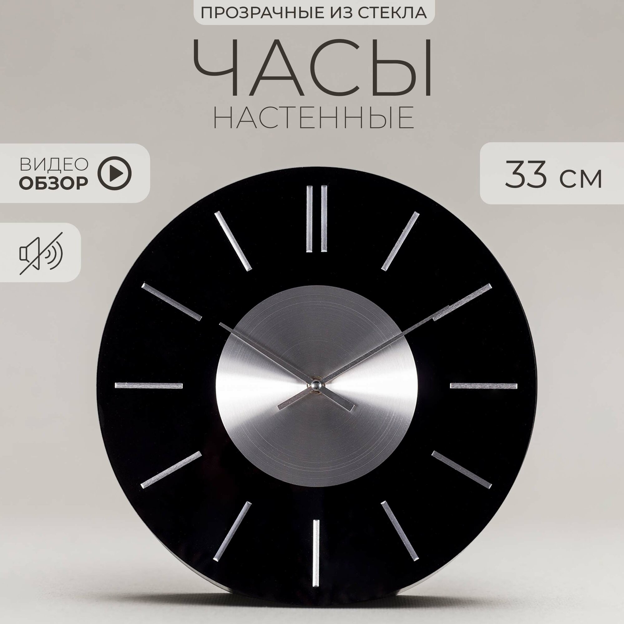 Кварцевые настенные часы с Рисками D=30 см, бесшумные часы с плавным ходом в шоу рум, Белый + Черный / интерьерные часы