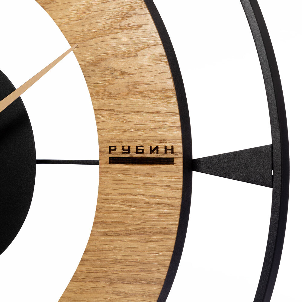 Часы настенные КЛАССИКА из металла, d=50 см, открытая стрелка, черный+ дерево 5601-002