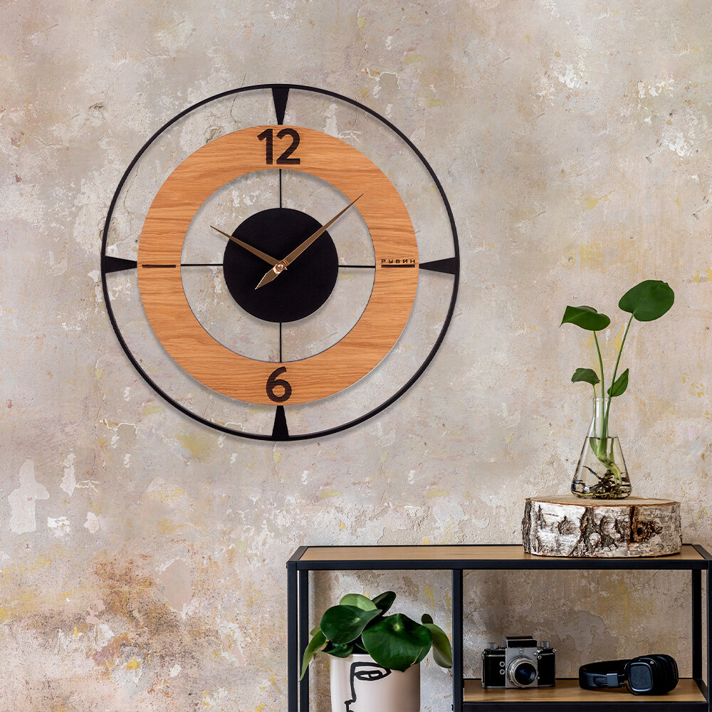 СохранитьЧасы настенные КЛАССИКА из металла, d=50 см, открытая стрелка, черный+дерево 5009-001 интересное: