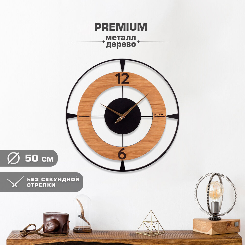 Рубин Часы настенные круглые 45,5 см, часы на стену большие бесшумные