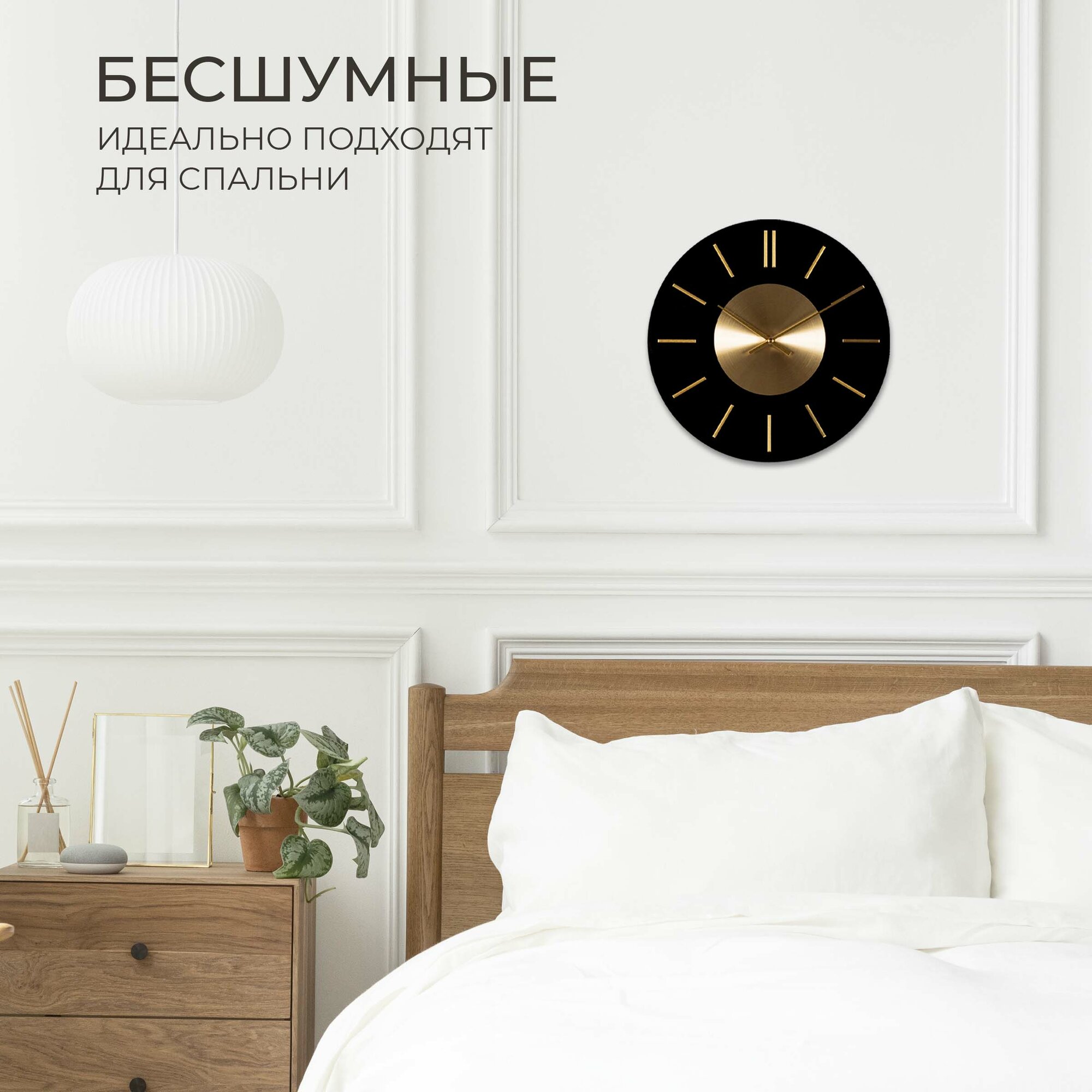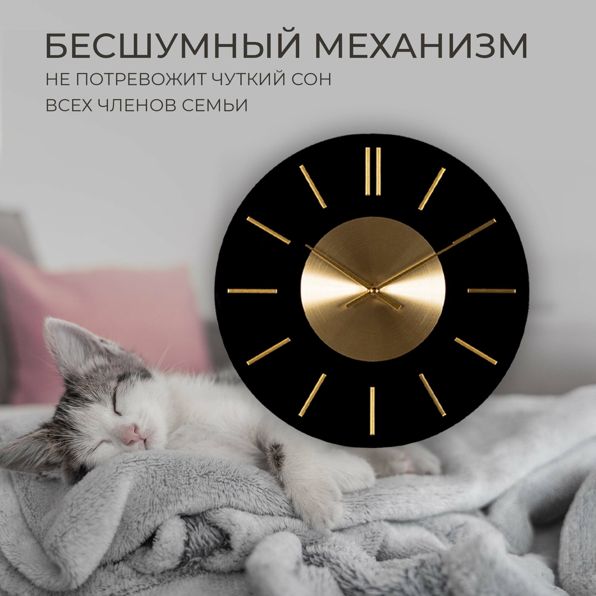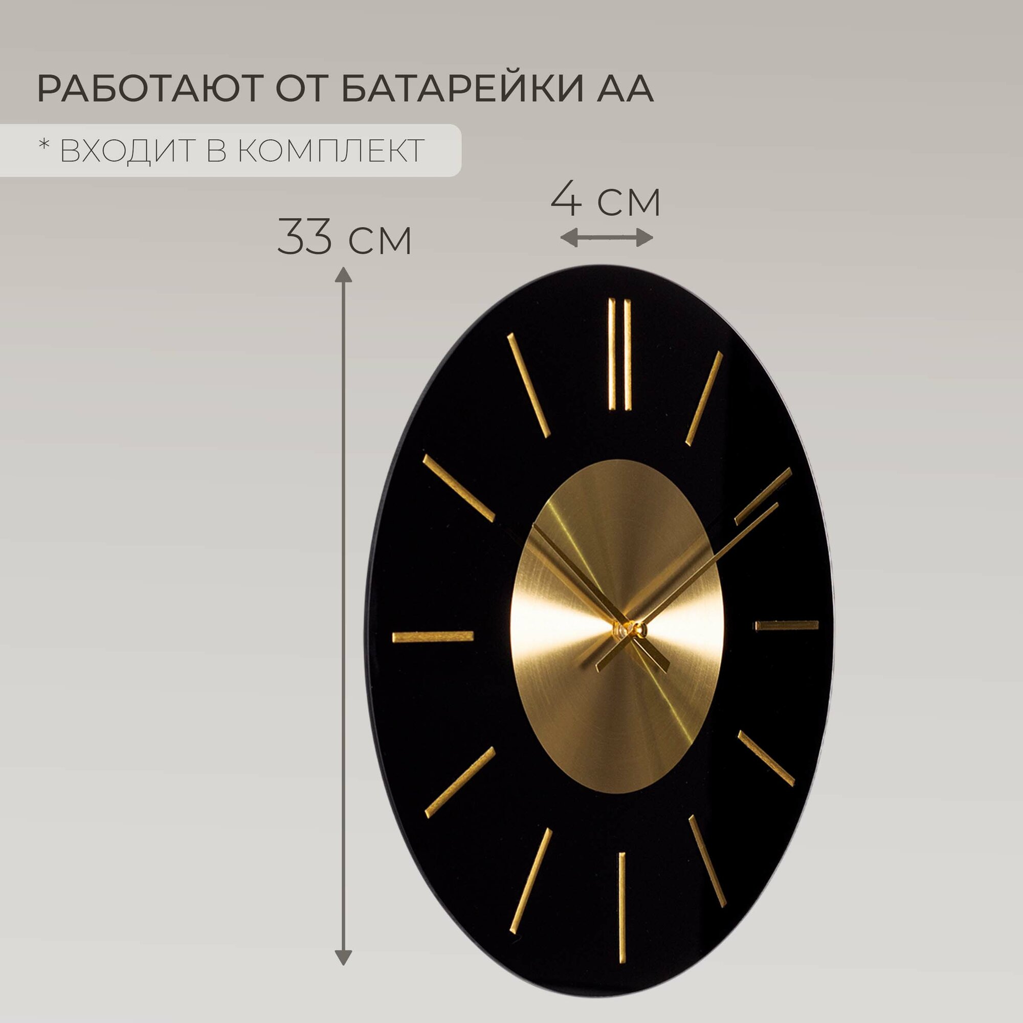 Часы настенные интерьерные, Рубин, часы бесшумные черные с золотым циферблатом
