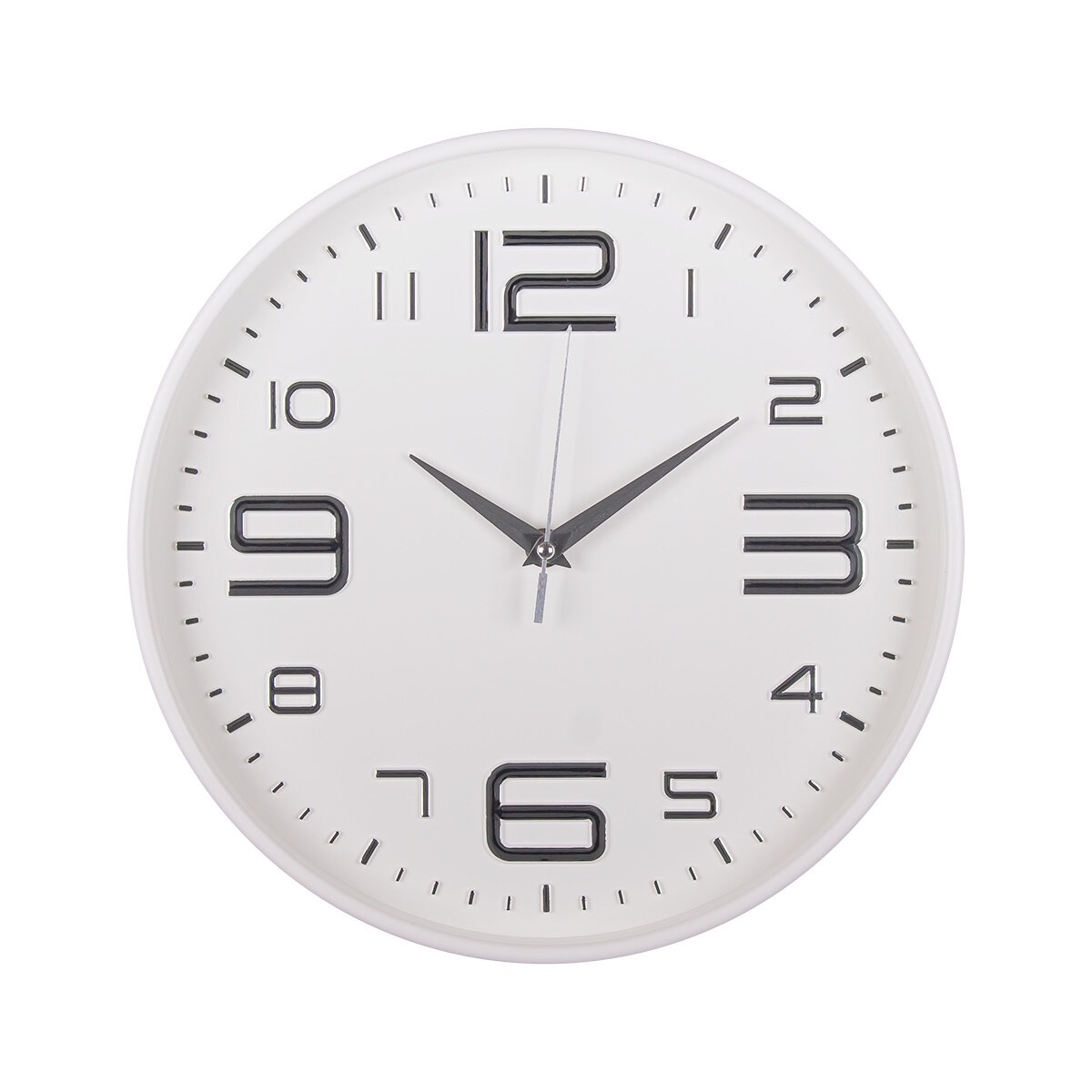Часы настенные, кварцевые, белые, бесшумные, круглые, пластик, стекло, арабские цифры, Рубин