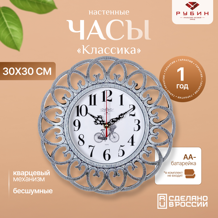 Часы настенные Рубин круглые, часы настенные бесшумные 32см кварцевые