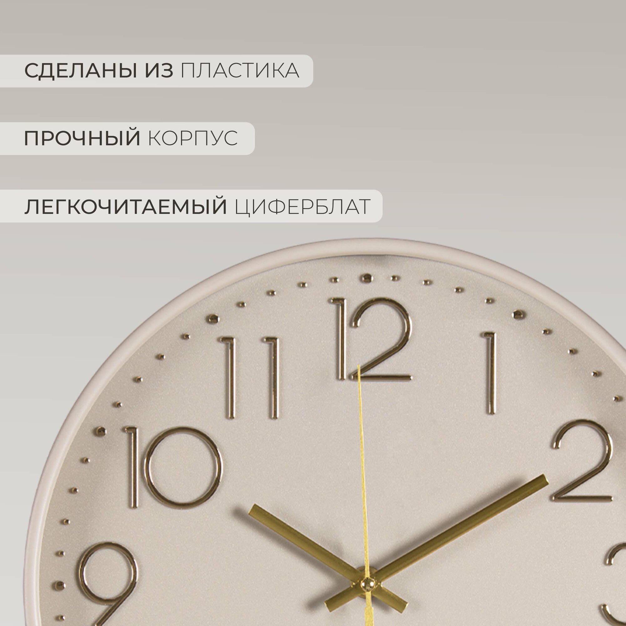 Часы настенные интерьерные, Рубин, часы бесшумные на кухню белые с золотым циферблатом 30 см