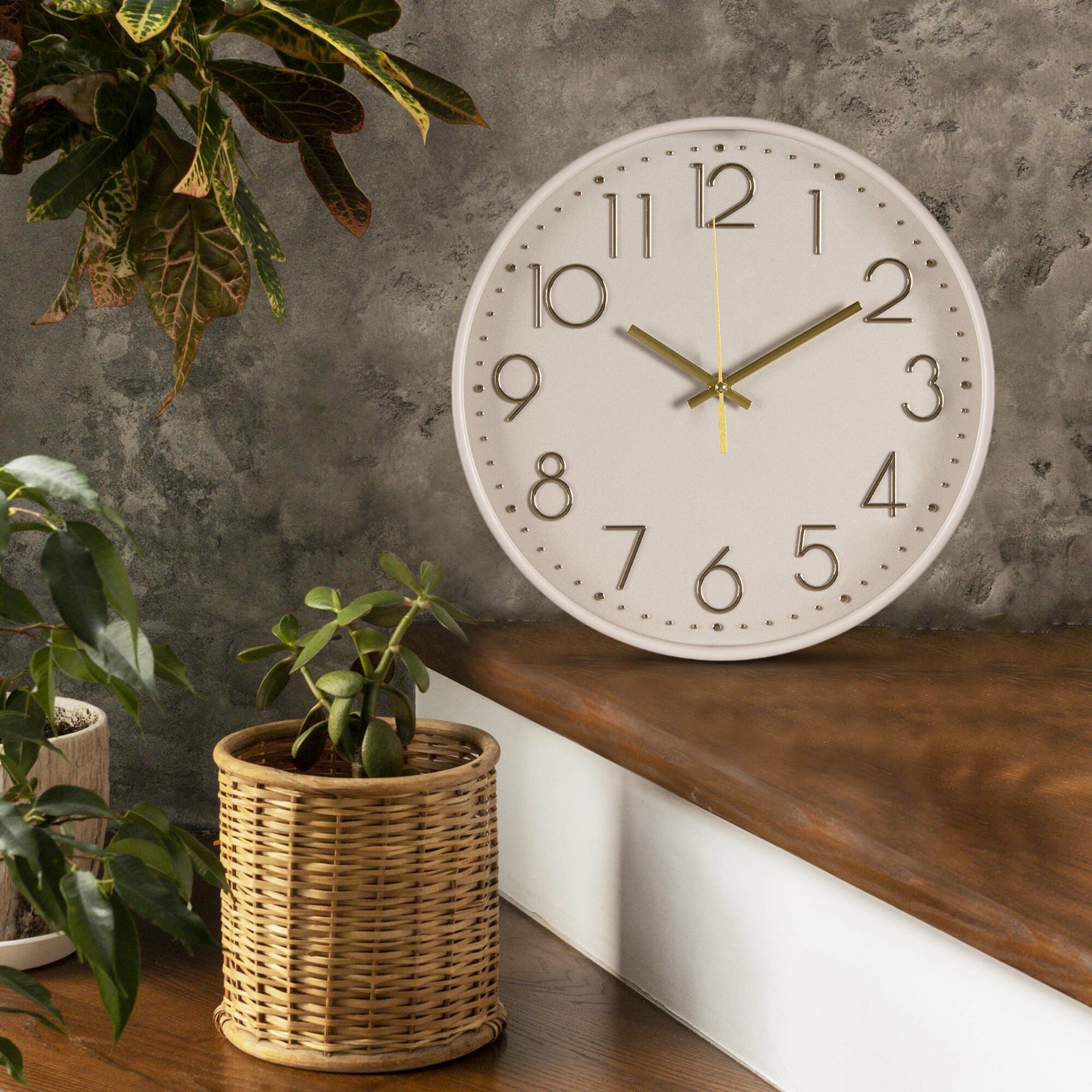 Часы настенные, кварцевые, белые, бесшумные, круглые, пластик, стекло, арабские цифры, Рубин