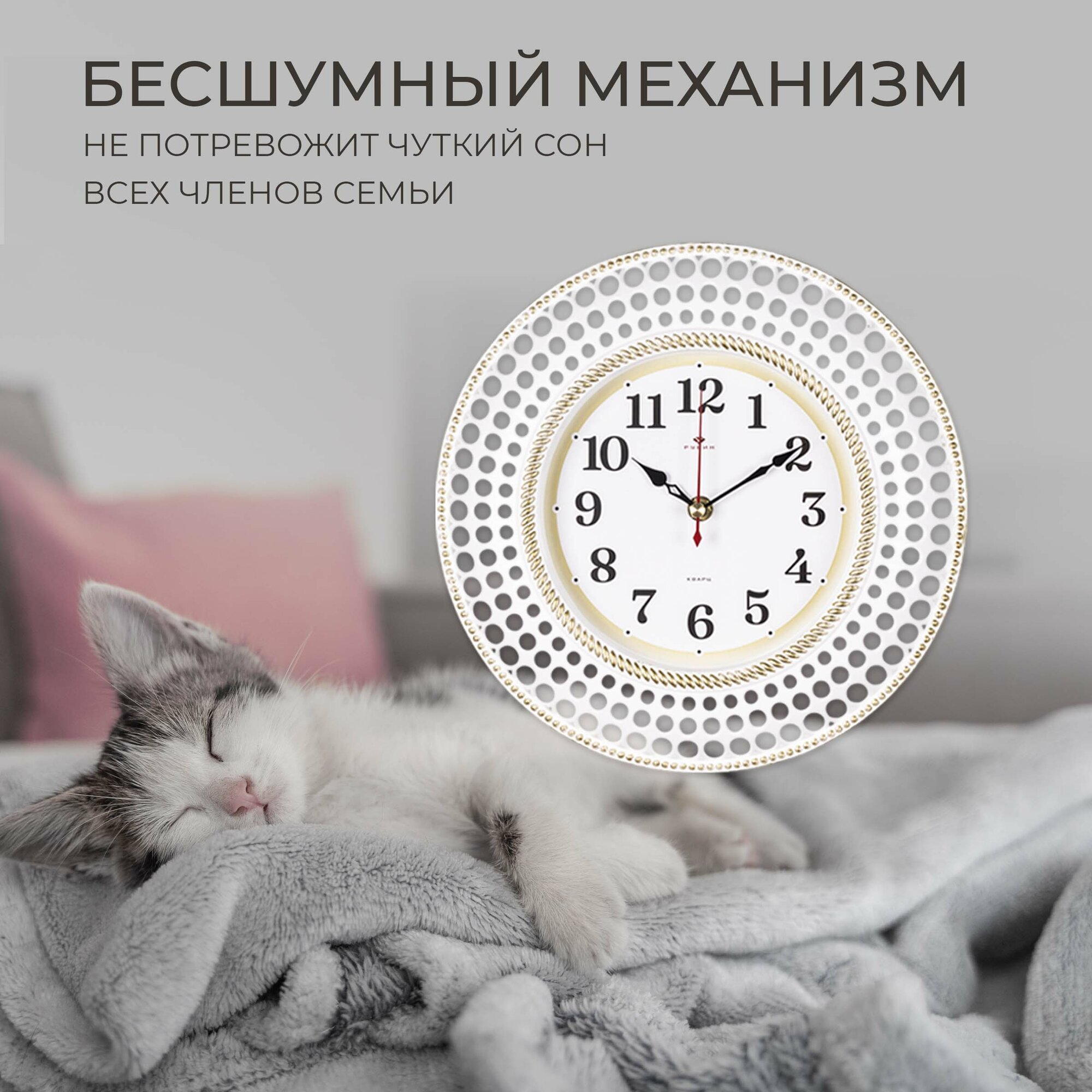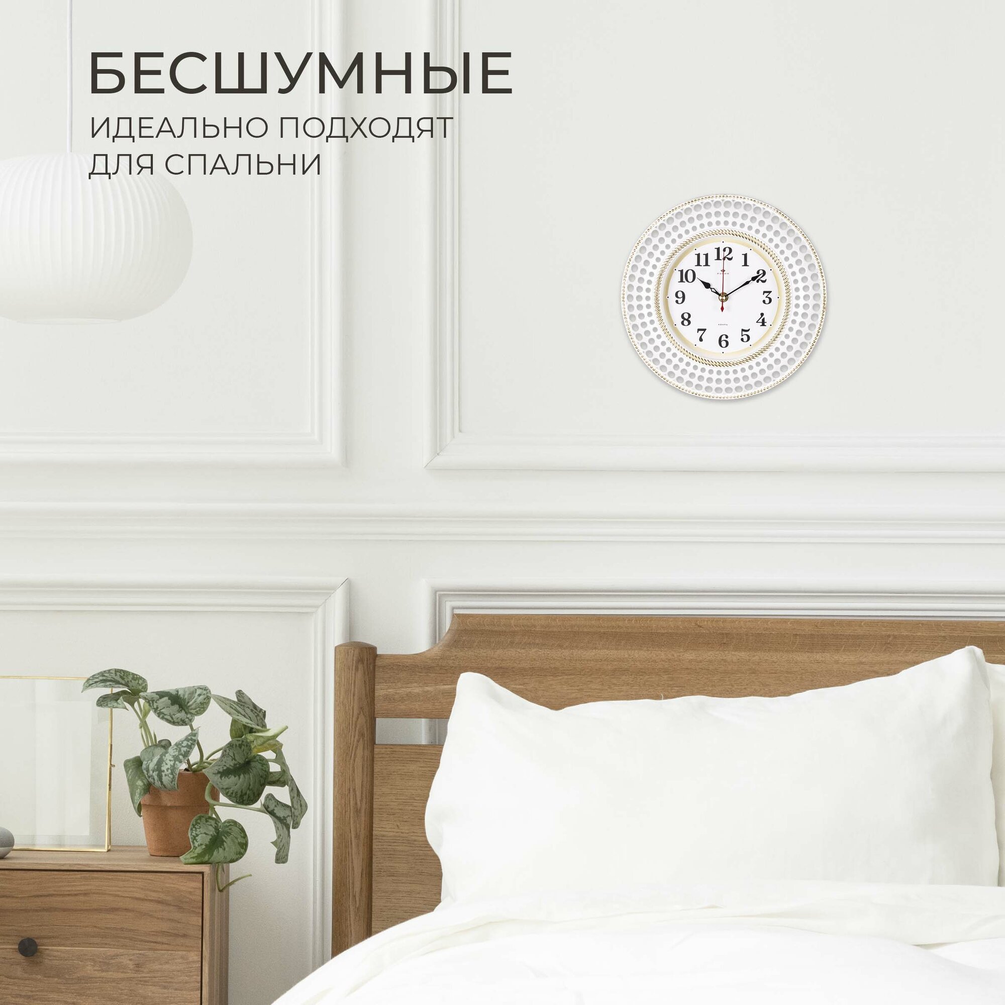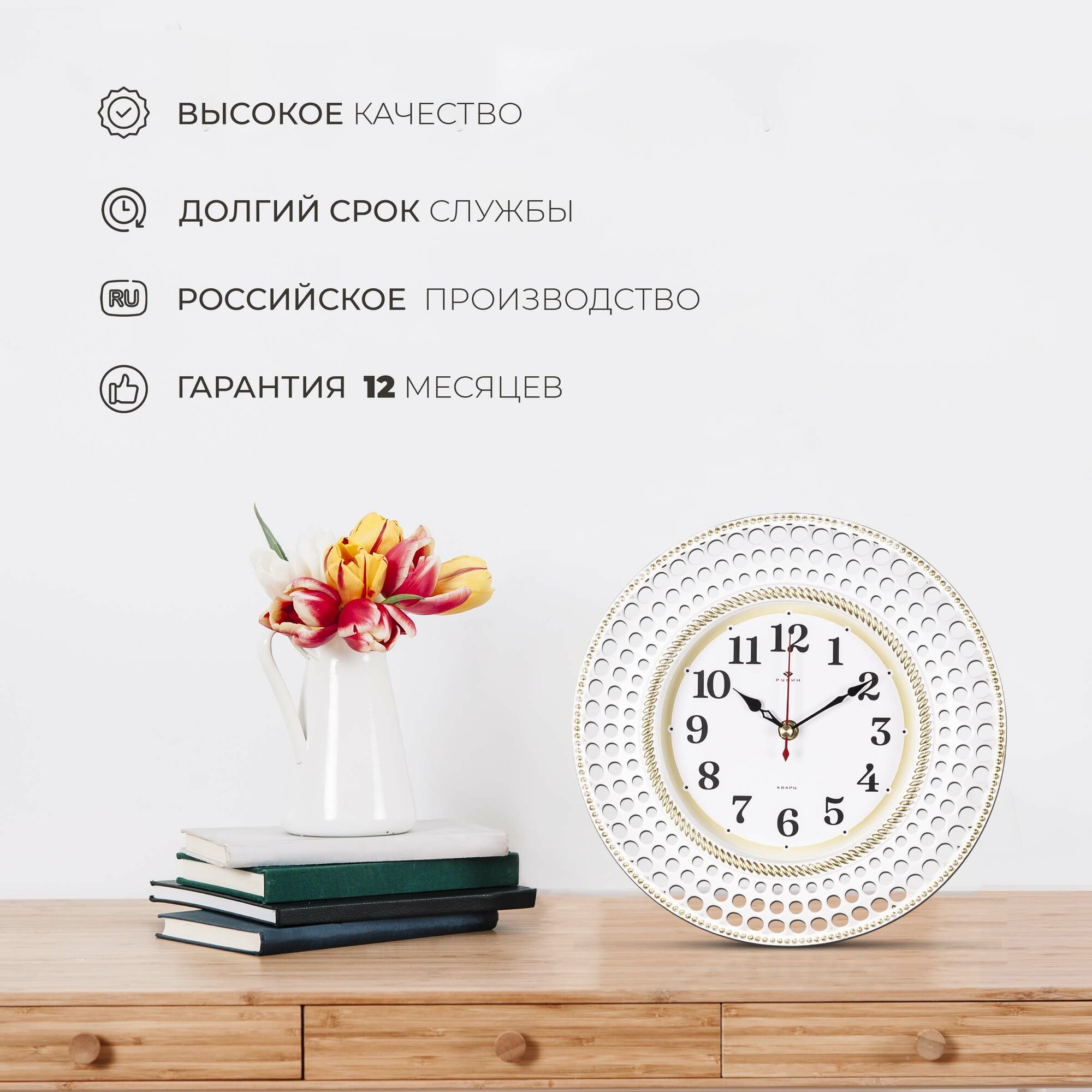 Часы настенные интерьерные, Рубин, часы бесшумные на кухню белые с золотым циферблатом 30 см