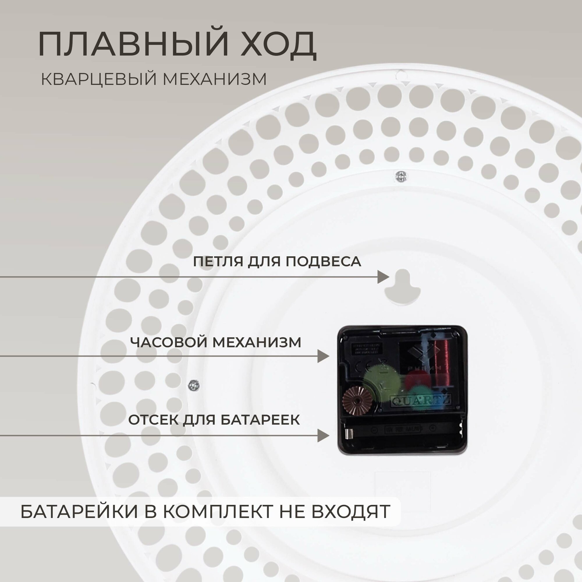 Часы настенные, кварцевые, белые, бесшумные, круглые, пластик, стекло, арабские цифры, Рубин