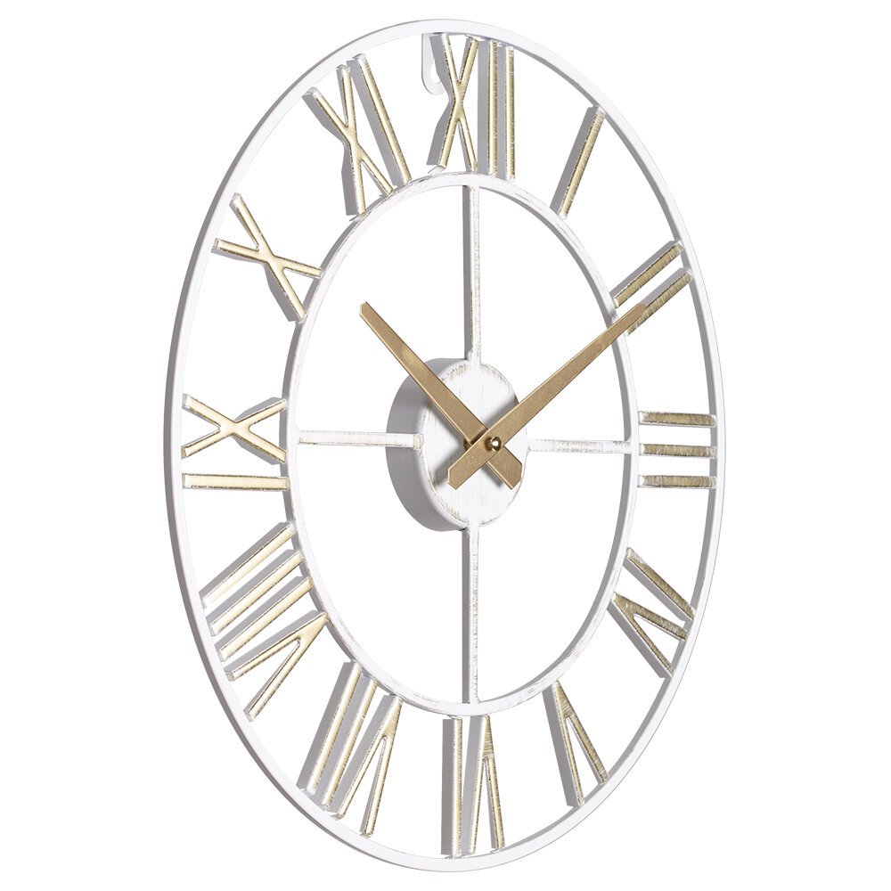 СохранитьЧасы настенные большие в гостиную «Рубин», диаметр 40 см, цвет белый/золотой, римский циферблат интересное: