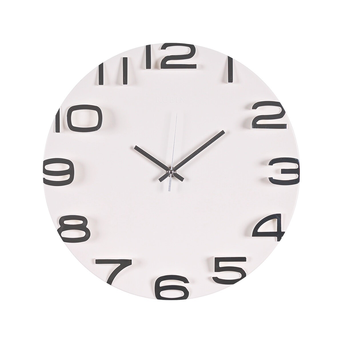 Часы настенные, кварцевые, белые, бесшумные, круглые, пластик, стекло, арабские цифры, Рубин