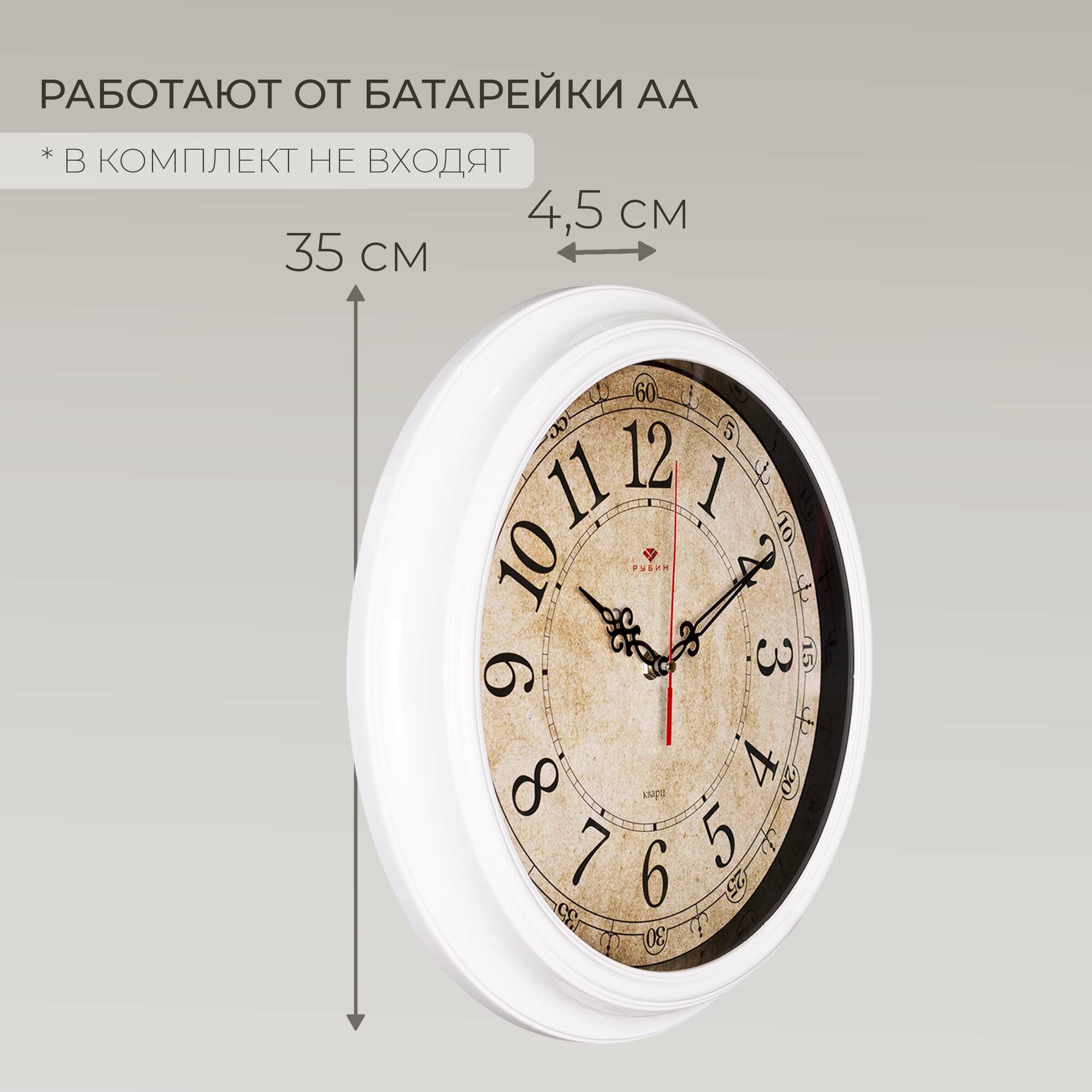 Стильные кварцевые часы в круглом корпусе Рубин Классика 3524-007 35 см с большими арабскими цифрами для украшения интерьера гостиной, спальни, кухни или офиса