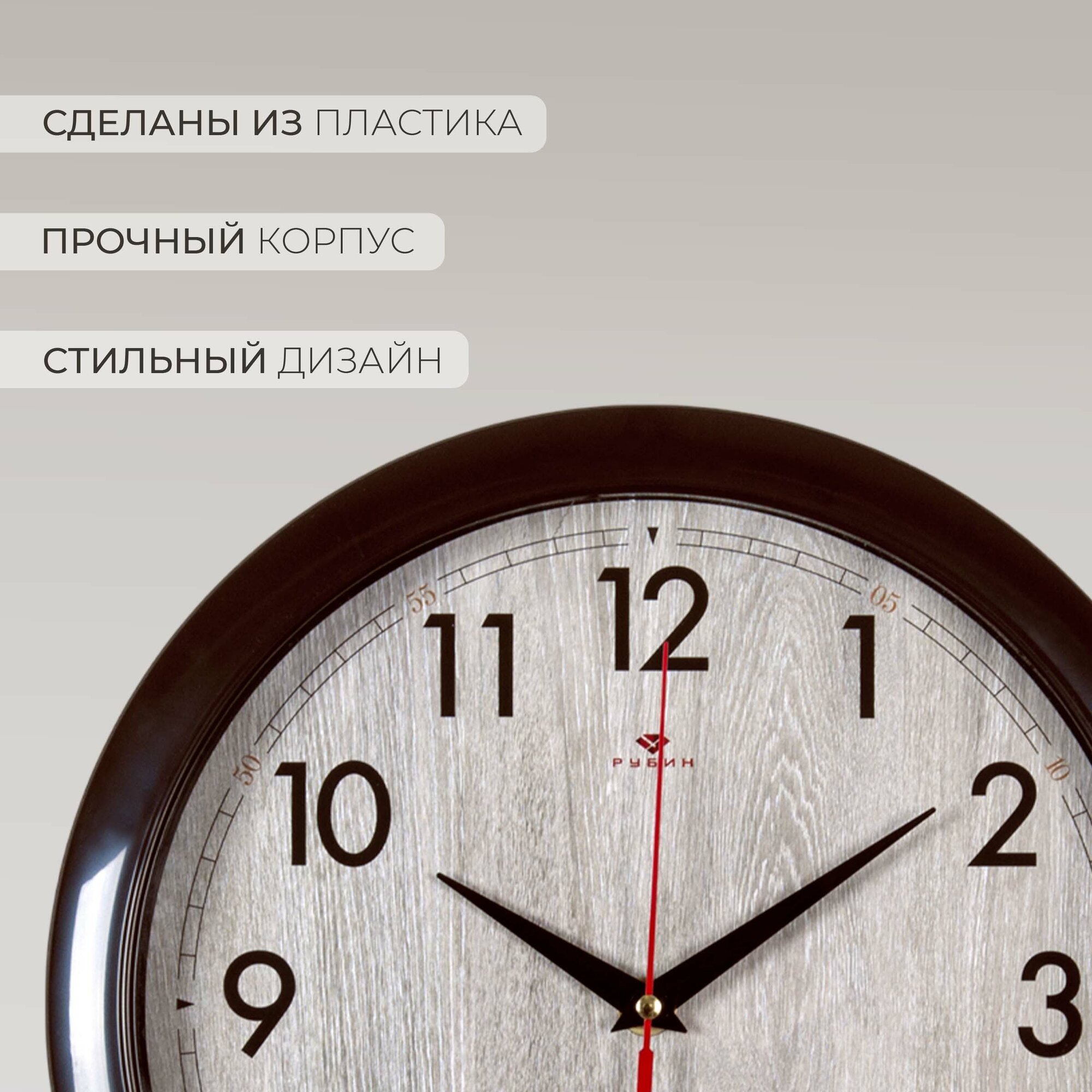 Настенные часы Рубин "Текстура Дерева", бесшумные, кварцевые, круглые, пластик, 29х29 см
