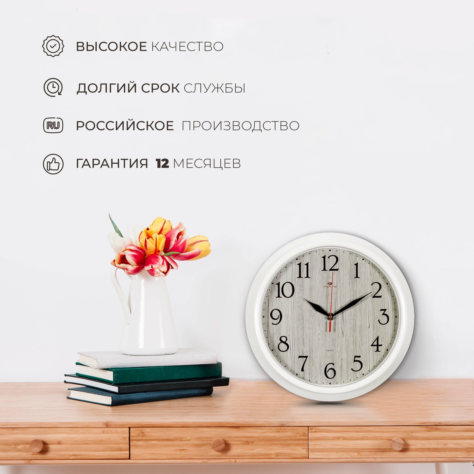 Настенные часы "Рубин" 2524-002, бесшумные, кварцевые, круглые, пластик, 25 см