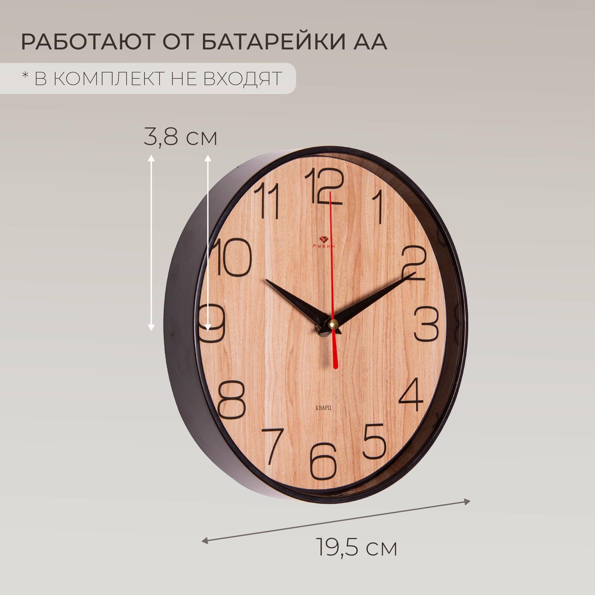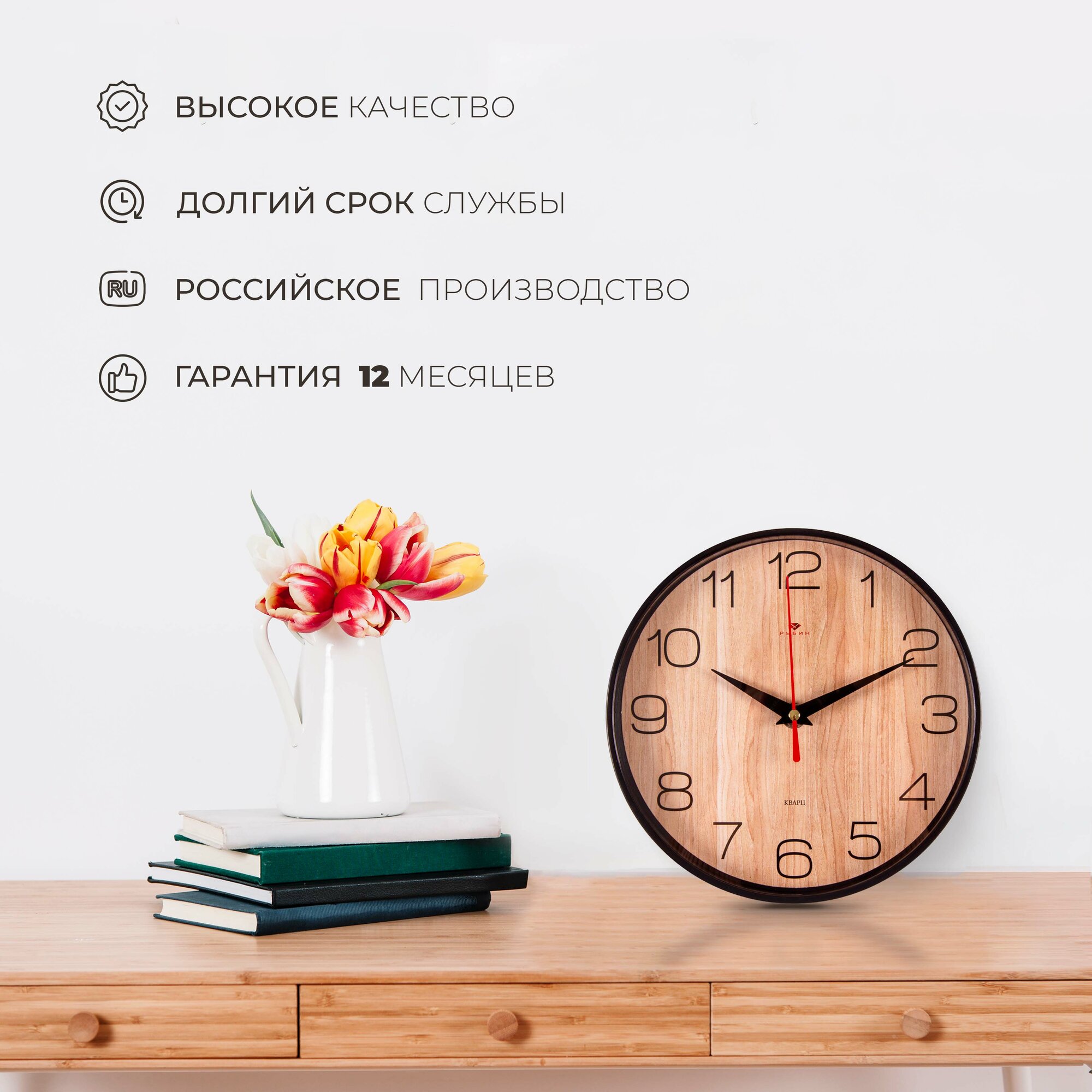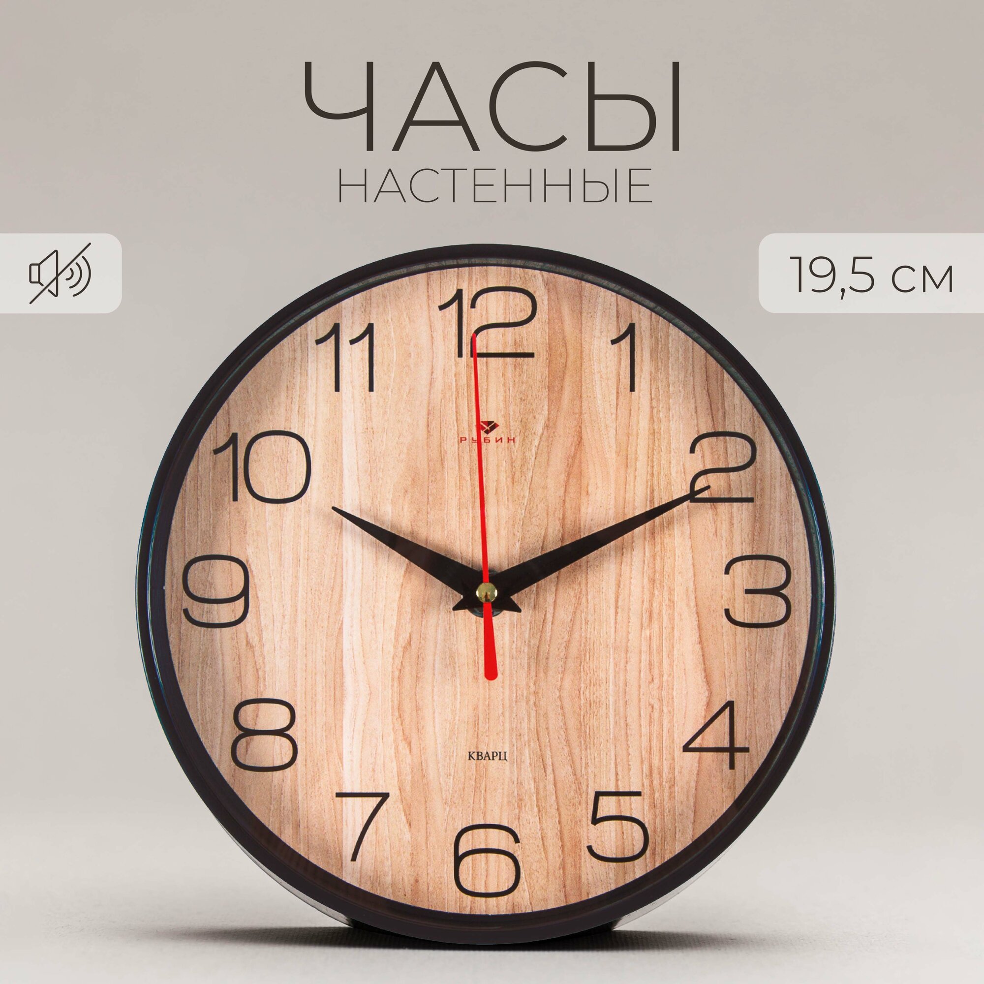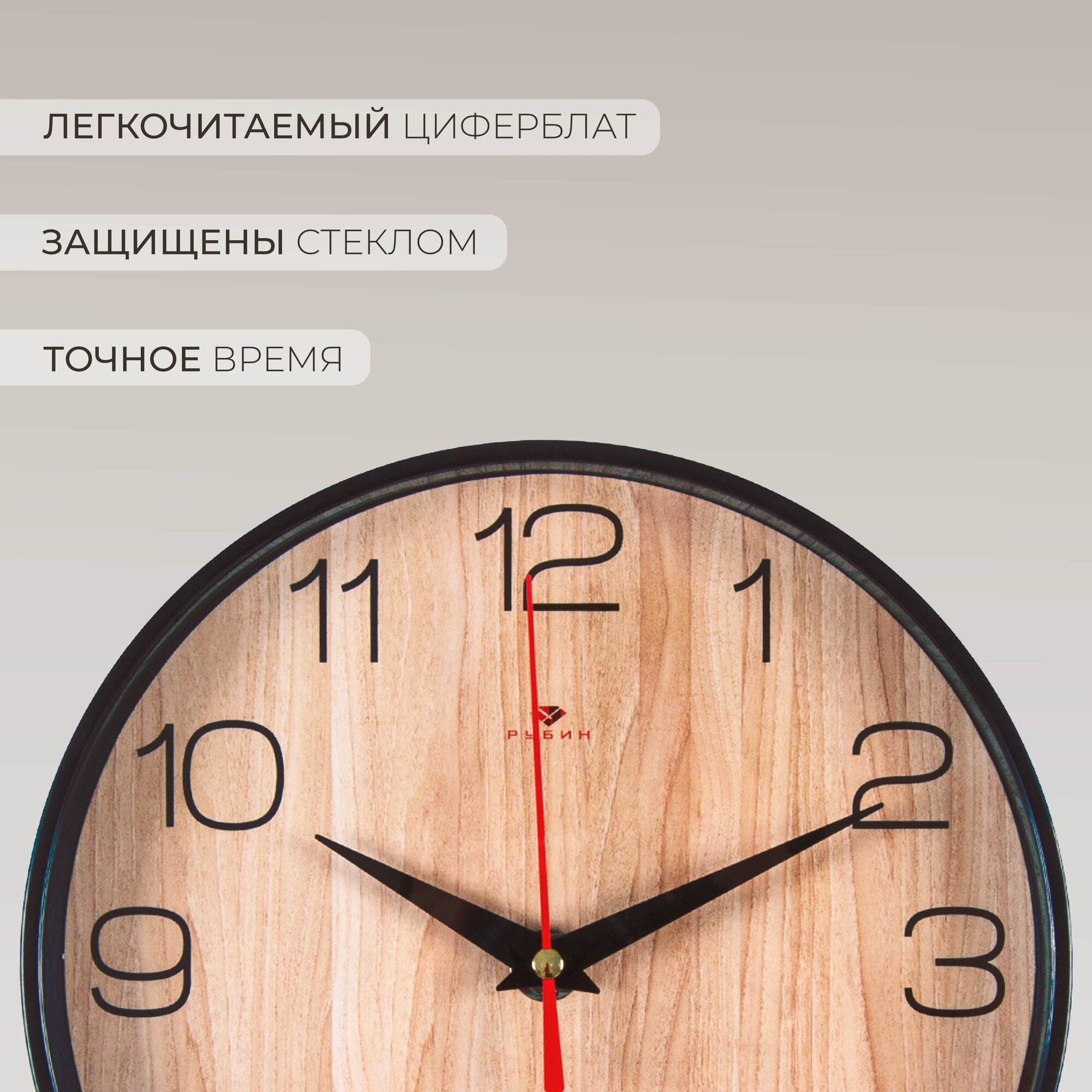 Круглые настенные часы Рубин Структкра дерева бесшумный кварцевый механизм, арабские цифры 29см