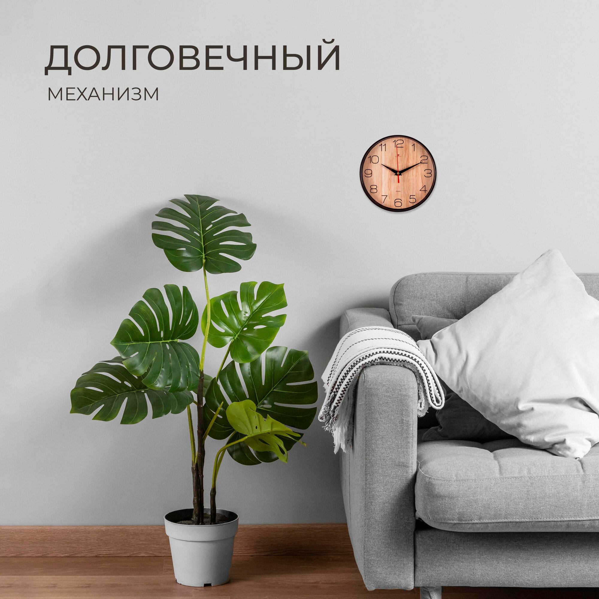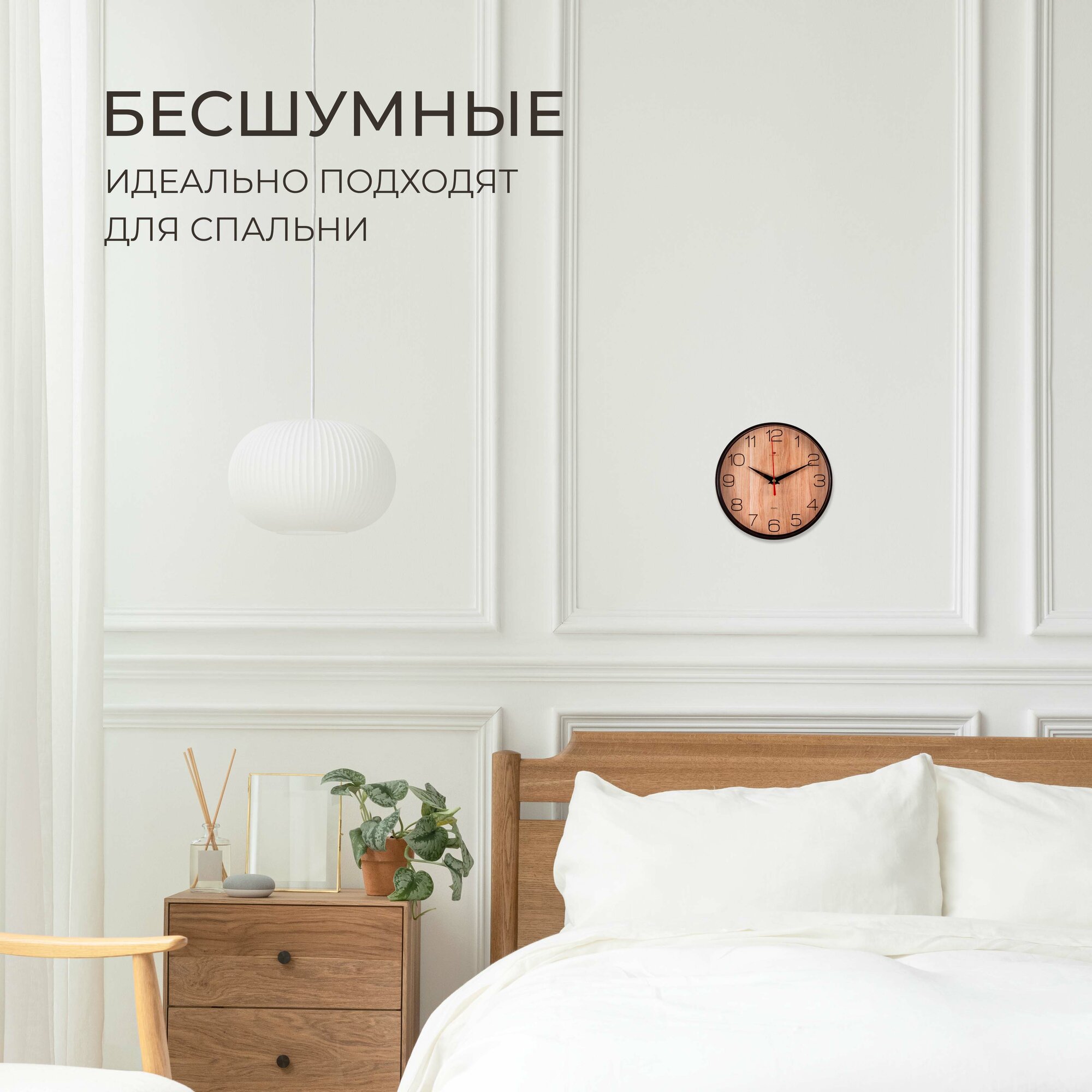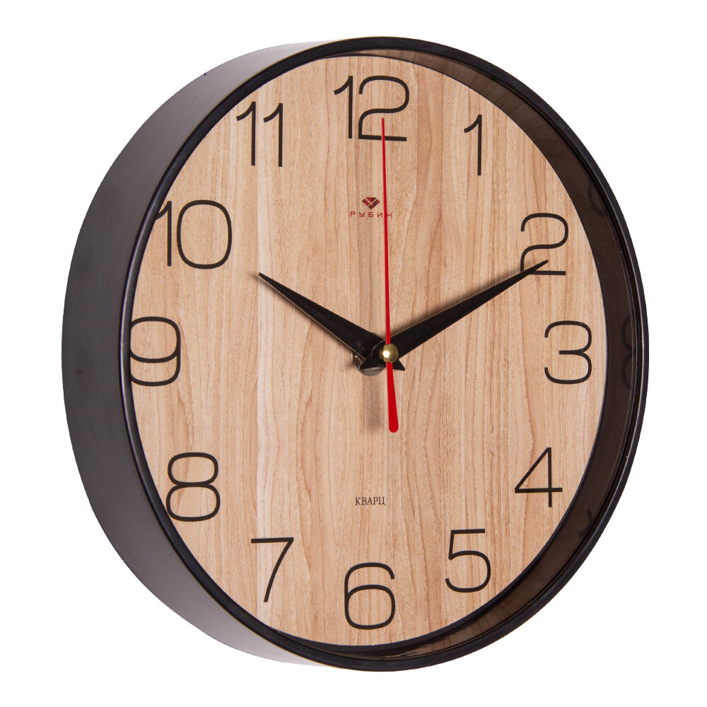 Настенные часы Рубин "Текстура Дерева", бесшумные, кварцевые, круглые, пластик, 29х29 см