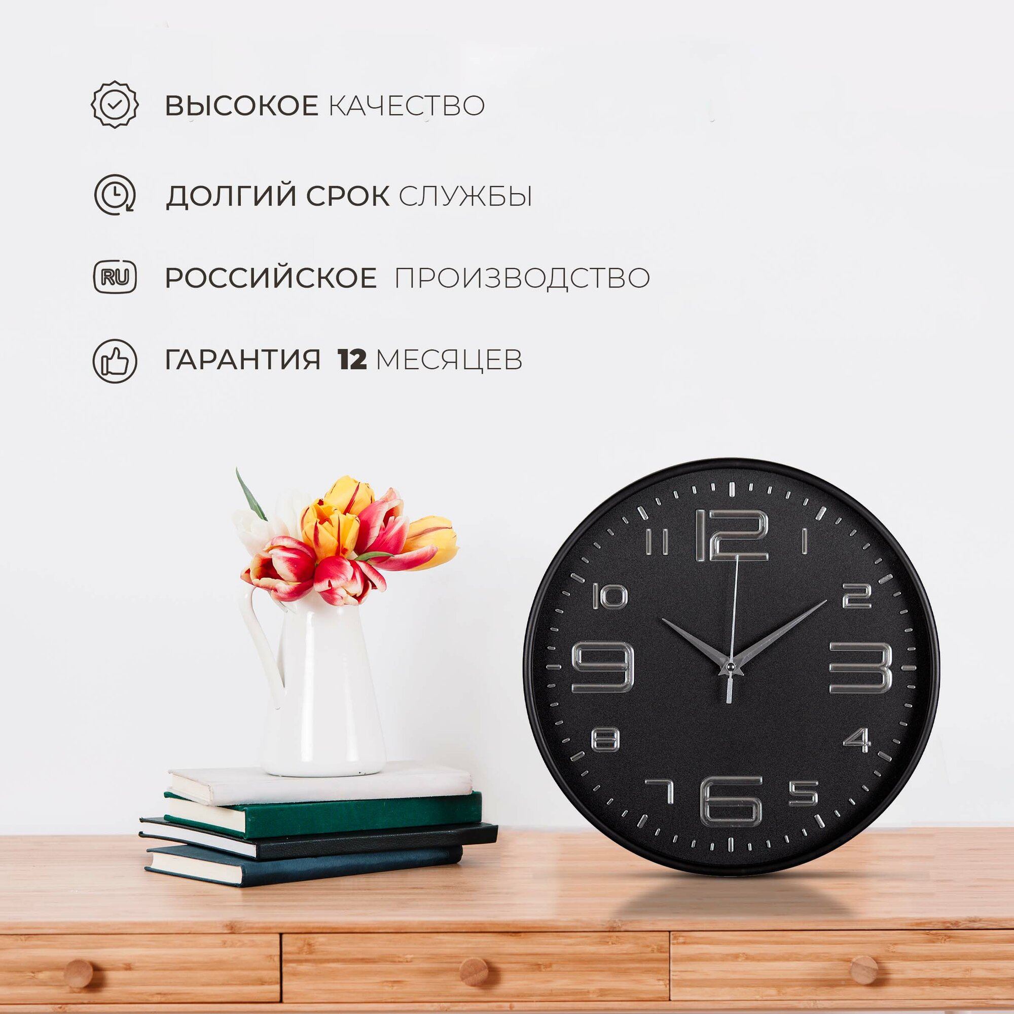 Ниже Вы можете прочитать отзывы на Часы настенные большие интерьерные Рубин 30см черные бесшумные, ознакомится с подробными характеристиками, посмотреть интересные обзоры и фотографии на Часы настенные большие интерьерные Рубин 30см черные бесшумные.