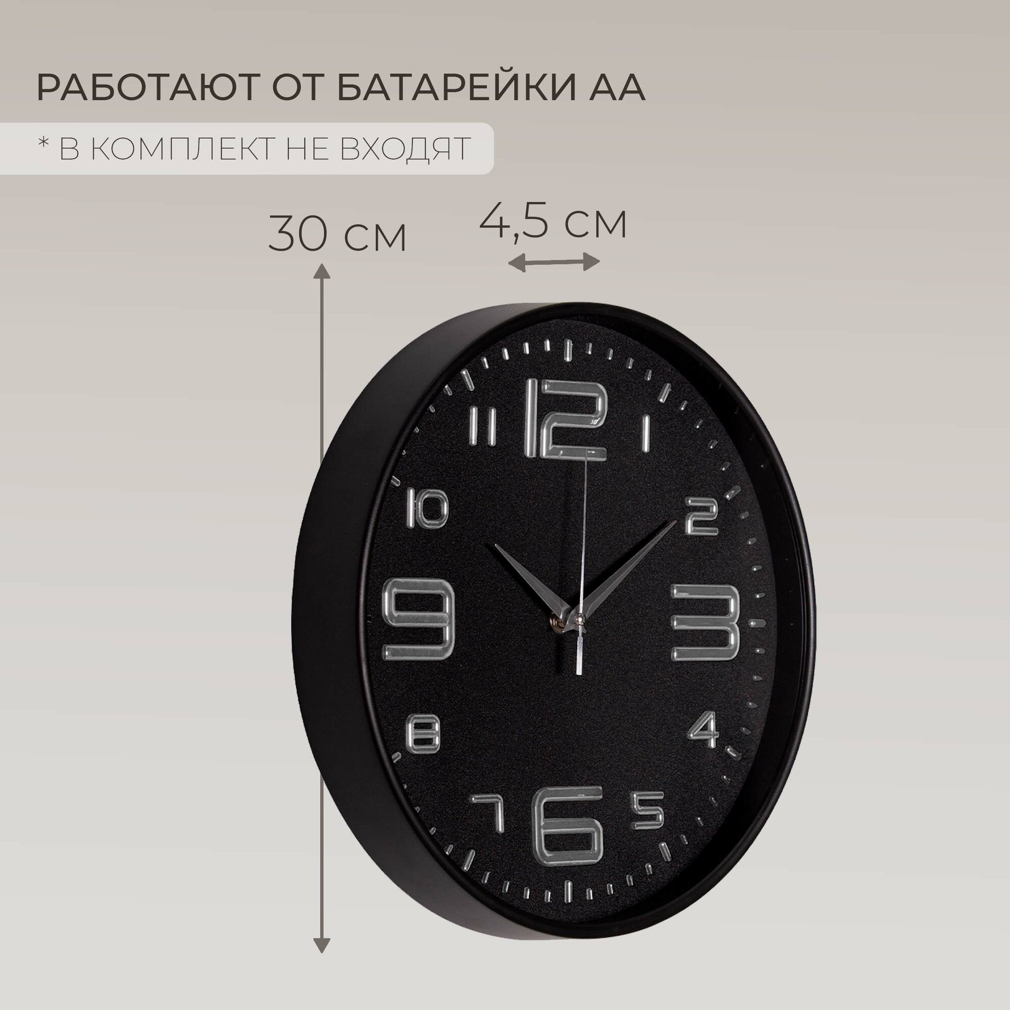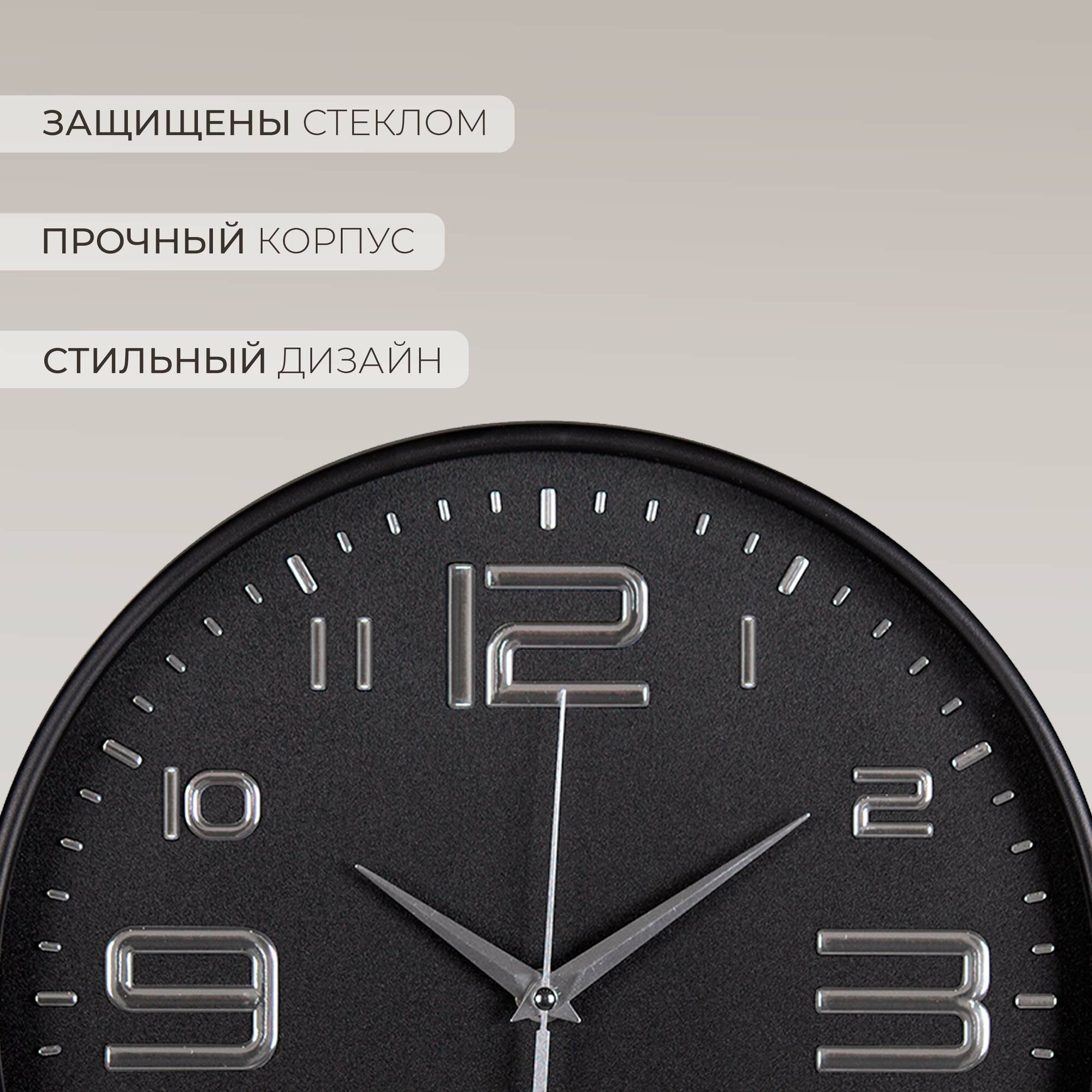 Купить Часы настенные большие интерьерные Рубин 30см черные бесшумные