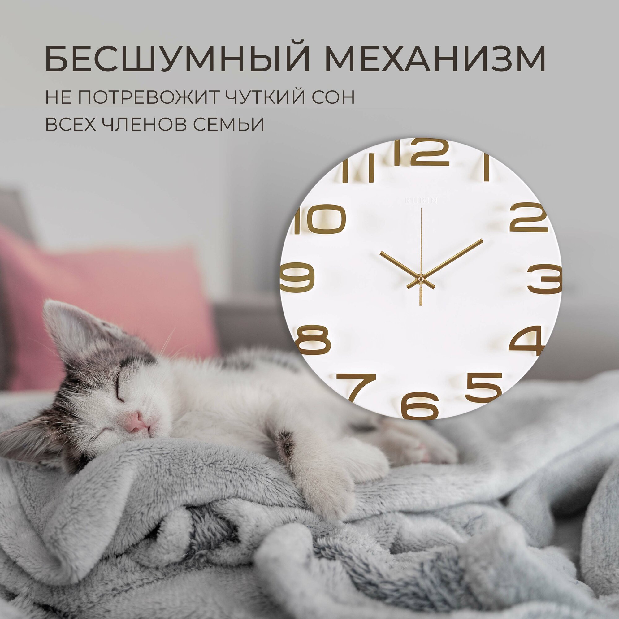 Рубин Часы настенные круглые 45,5 см, часы на стену большие бесшумные