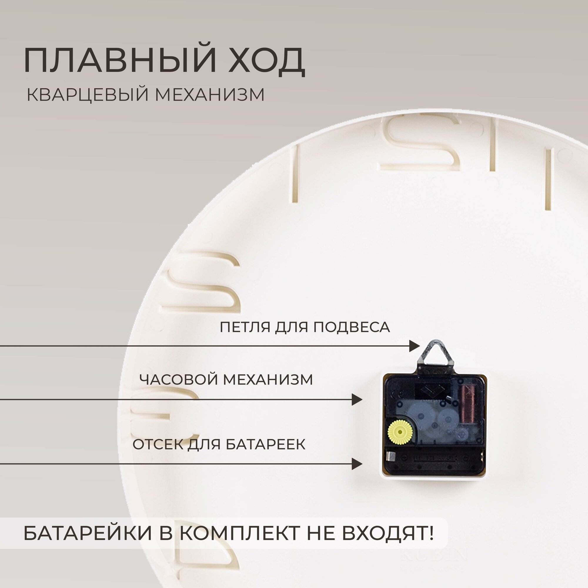 Часы Рубин , кварцевые, круглые, бежевые, плавный ход, корпус из пластика