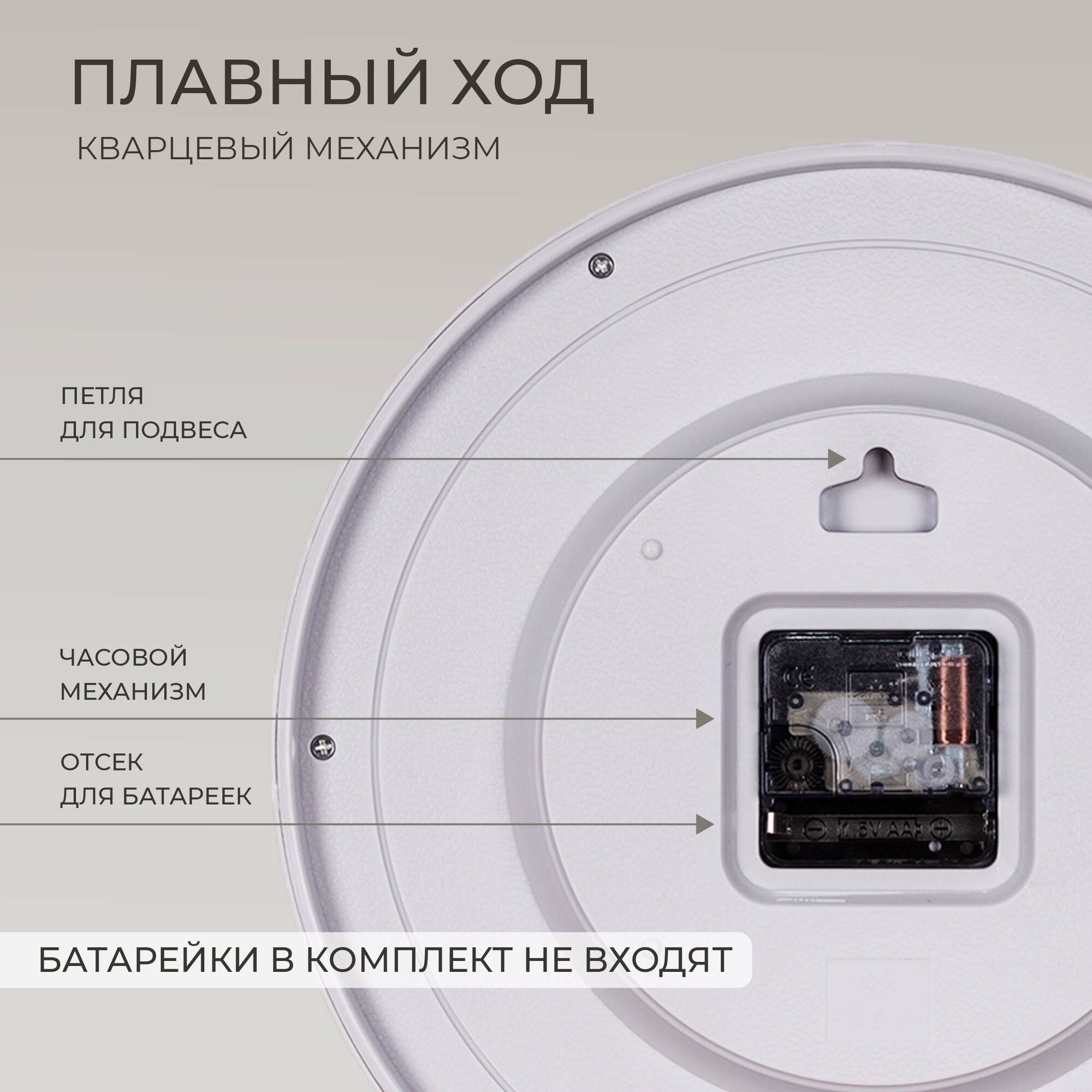 Часы настенные, кварцевые, белые, бесшумные, круглые, пластик, стекло, арабские цифры, Рубин
