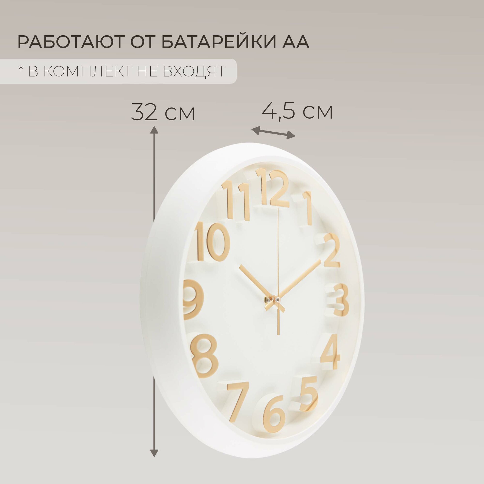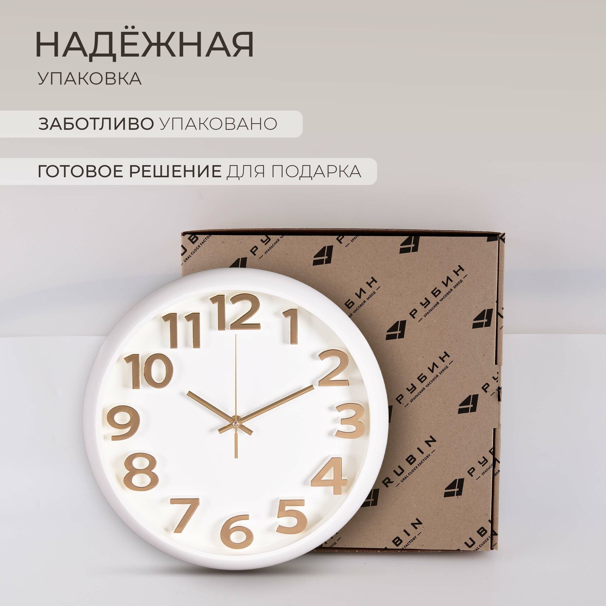 Часы настенные интерьерные, Рубин, часы бесшумные на кухню белые с золотым циферблатом 30 см