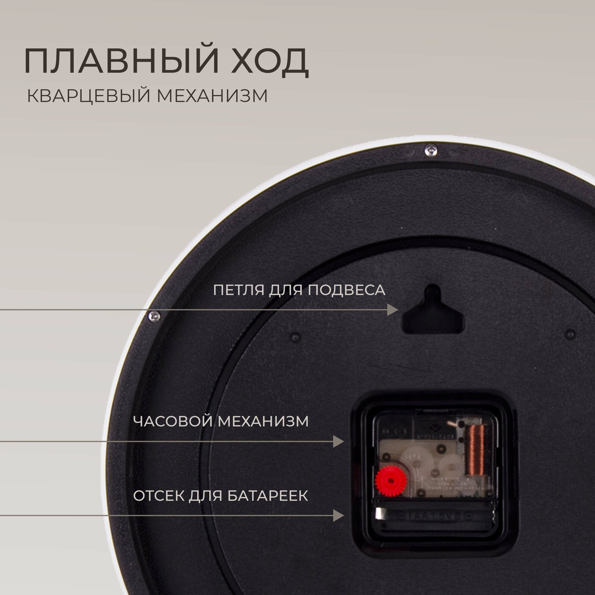 Стильные кварцевые часы в круглом корпусе Рубин Классика 3524-007 35 см с большими арабскими цифрами для украшения интерьера гостиной, спальни, кухни или офиса
