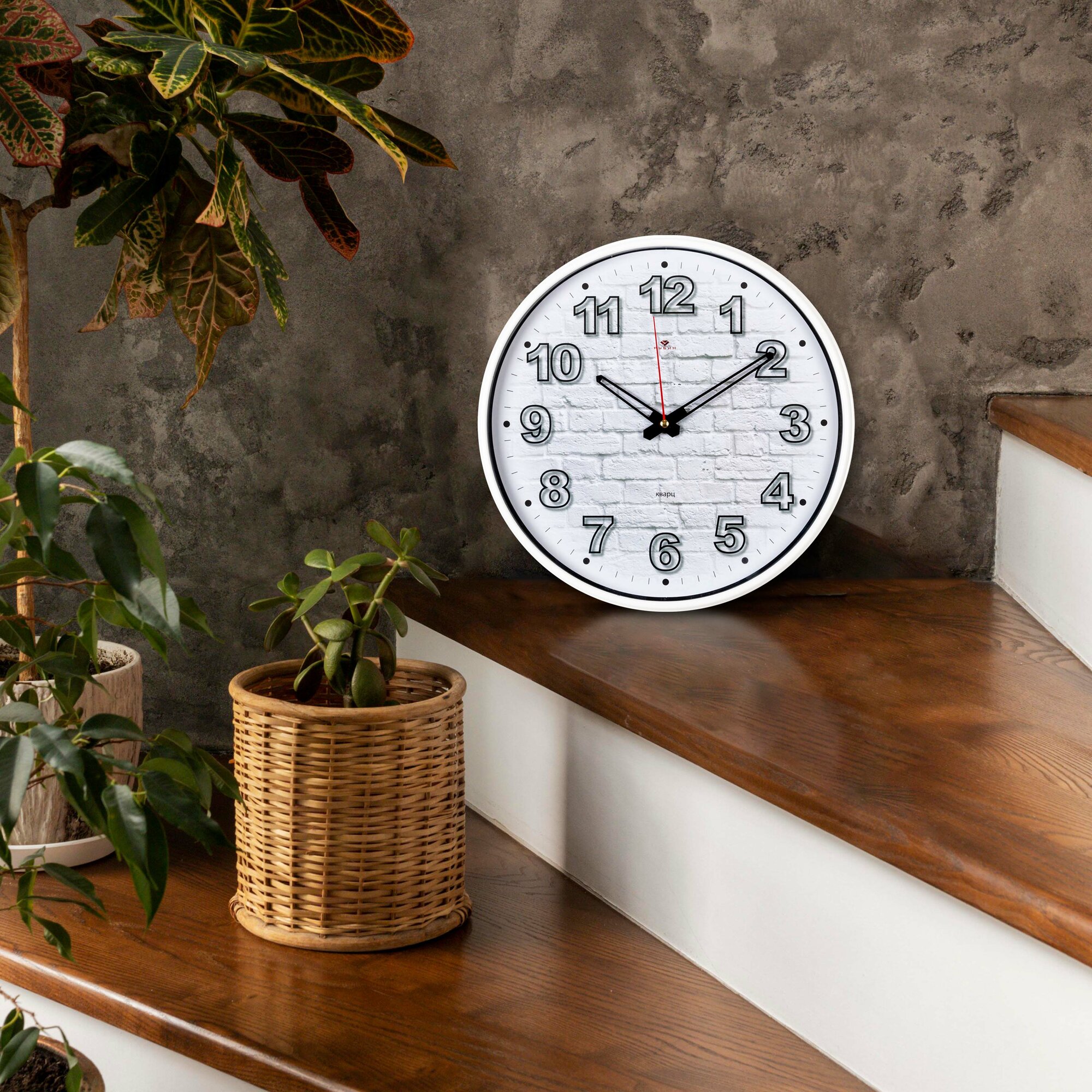 Часы настенные, кварцевые, белые, бесшумные, круглые, пластик, стекло, арабские цифры, Рубин