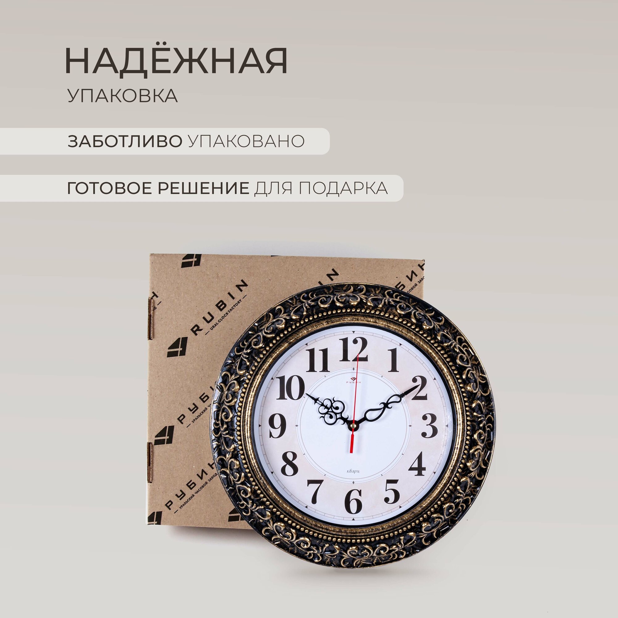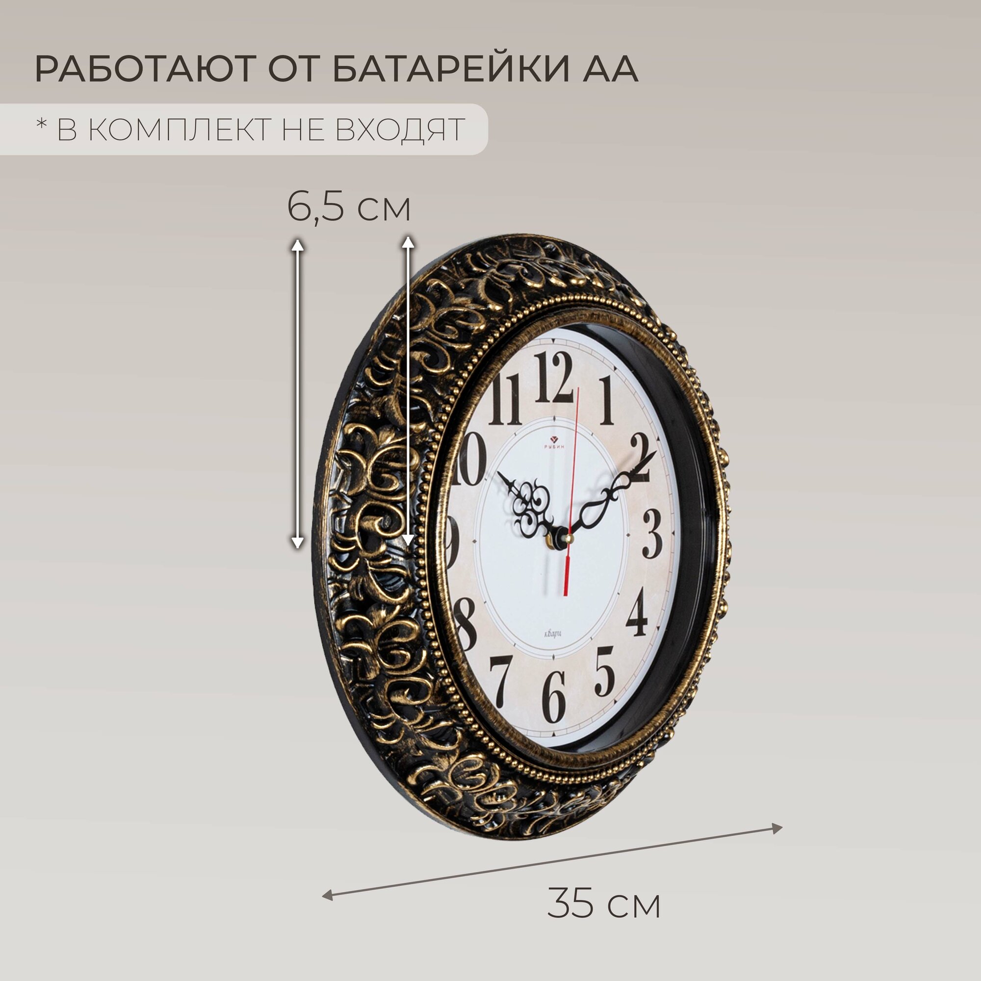Часы настенные Рубин "Античность" Рубин, круглые, кварцевые, плавный ход, бесшумный, d35см