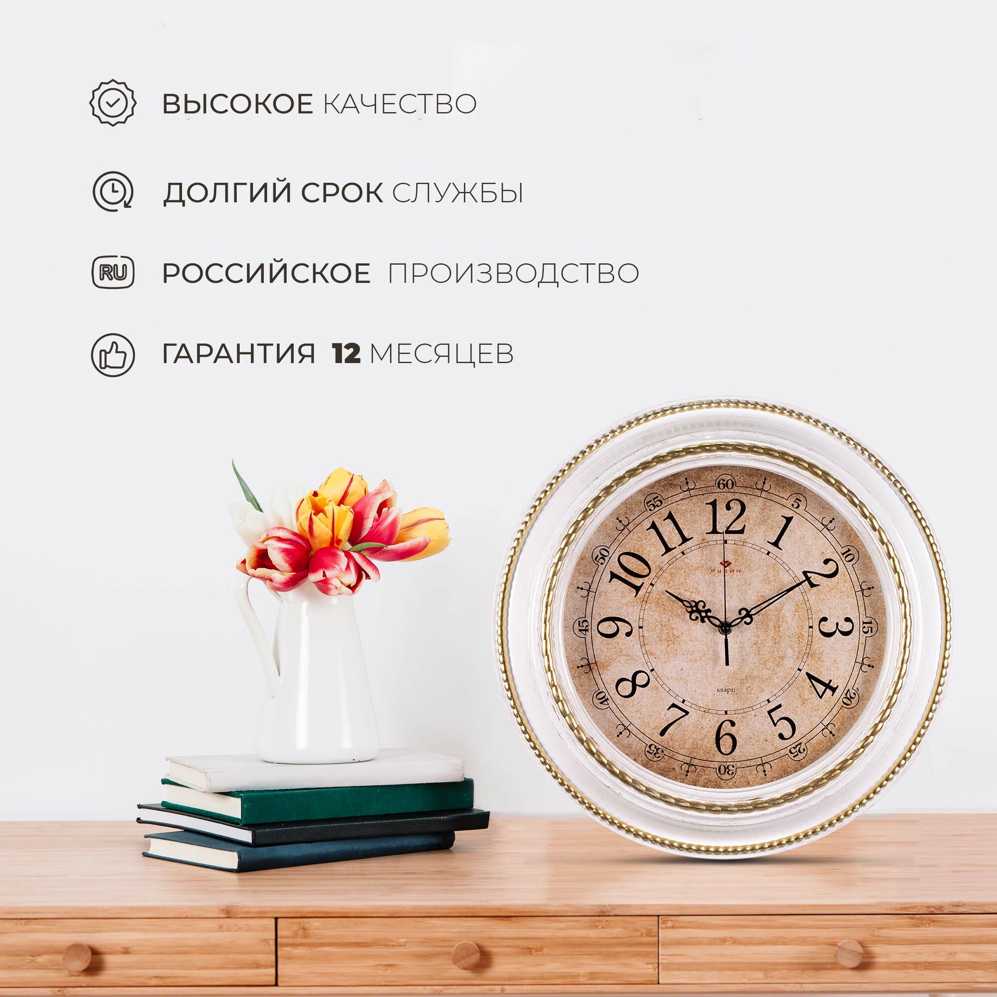 Часы настенные интерьерные, Рубин, часы бесшумные на кухню белые с золотым циферблатом 30 см