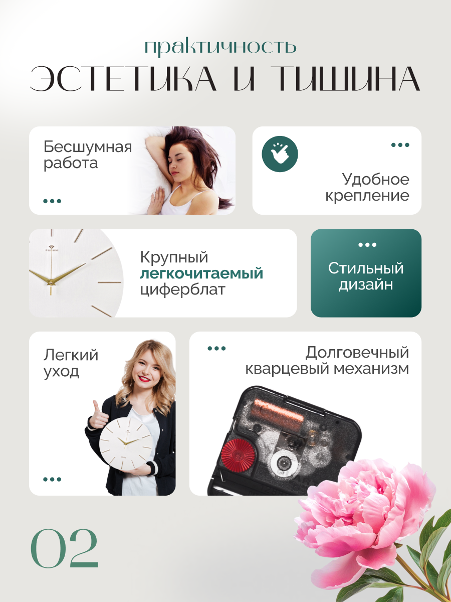 Часы настенные бесшумные Рубин Легкость 22,5х26,5см с механизмом декор для интерьера